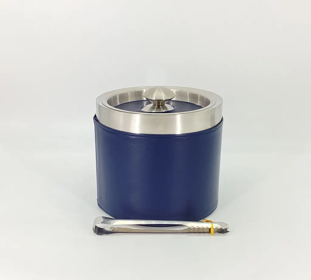 Open Box: French Handcrafted Leather Ice Bucket With Tongs - Navy