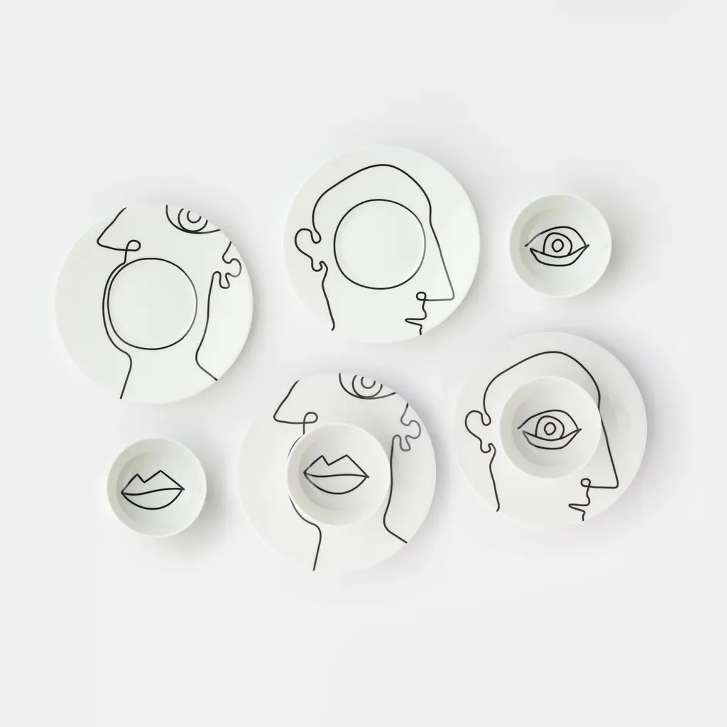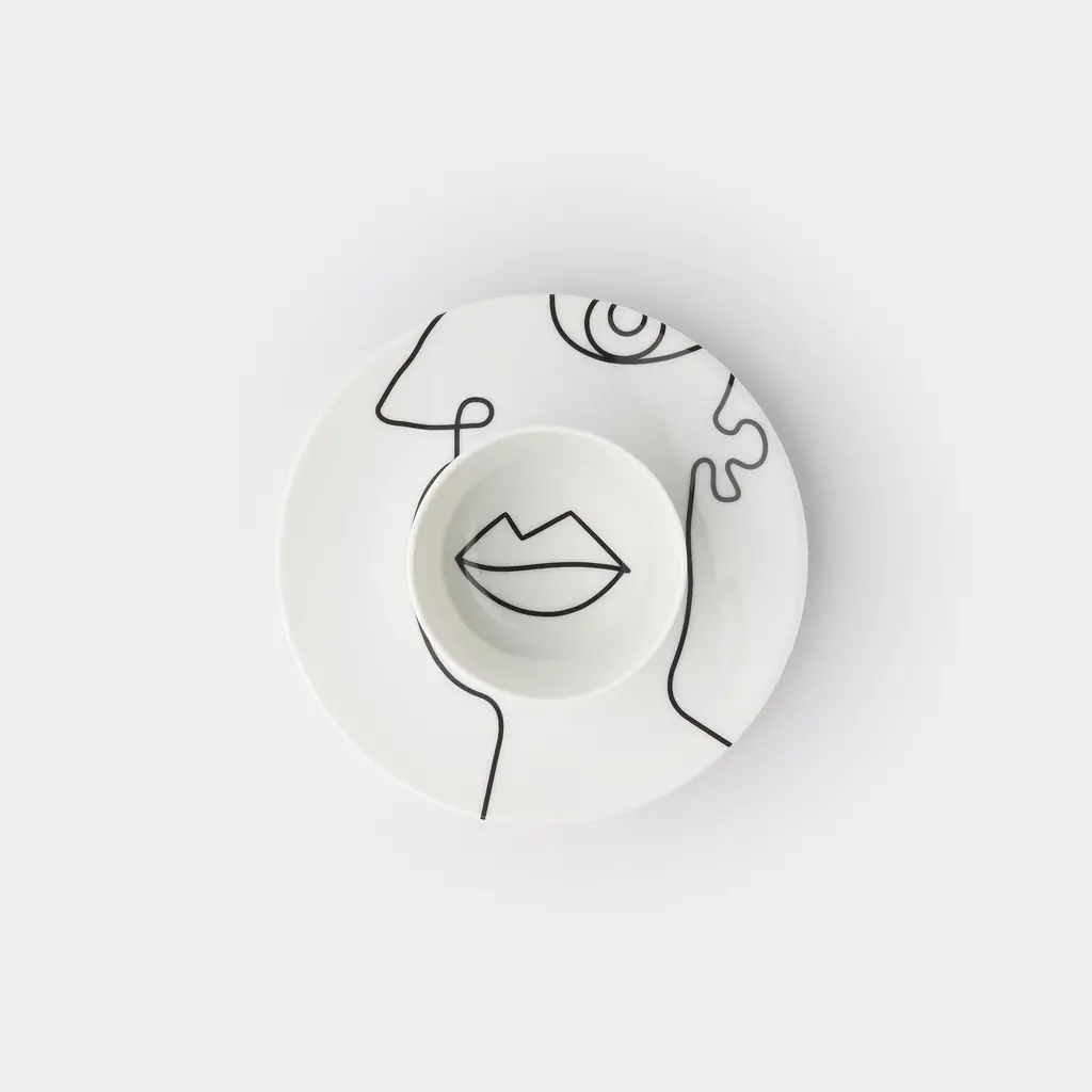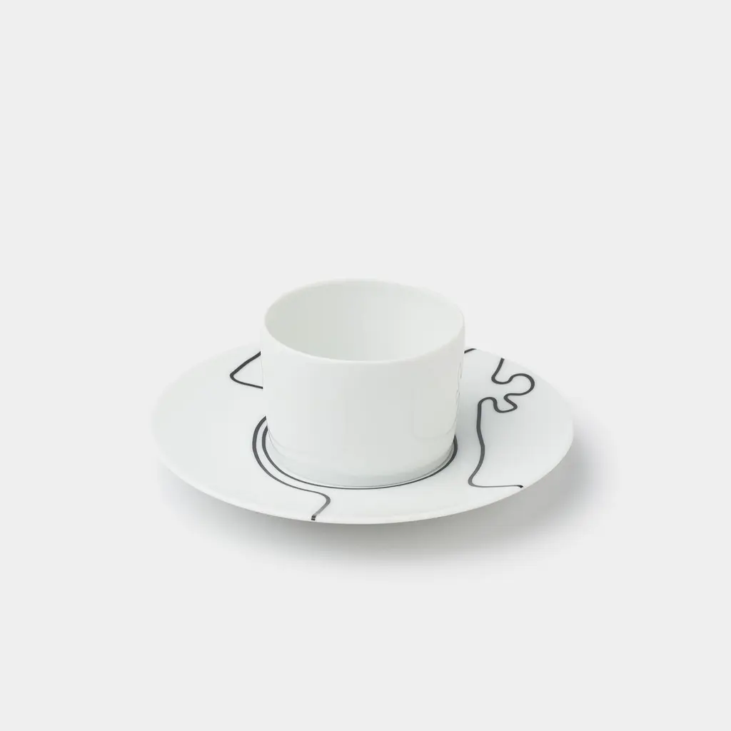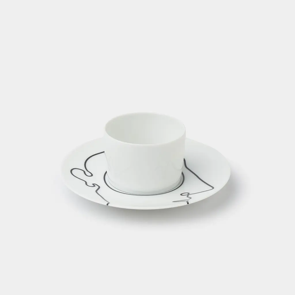 Get the conversation flowing over a cup of coffee or tea with this creative set from the Extranorm collection. Created by architect and designer Patrick Knoch, the Opinion porcelain set sets the tone for memorable coffee breaks with its imaginative design. The two cups with saucers complement each other. While both of them feature a line portrait on the saucer, each cup focuses on a different area: the eye or the mouth. This playful set is crafted to last in Limoges, France. Thanks to the manufacturing technique that uses extremely high temperatures, the black illustration is durable and can handle both dishwashers and microwaves. Perfect as a gift.