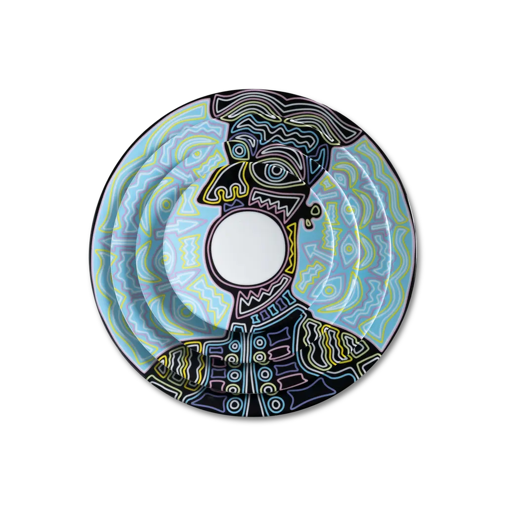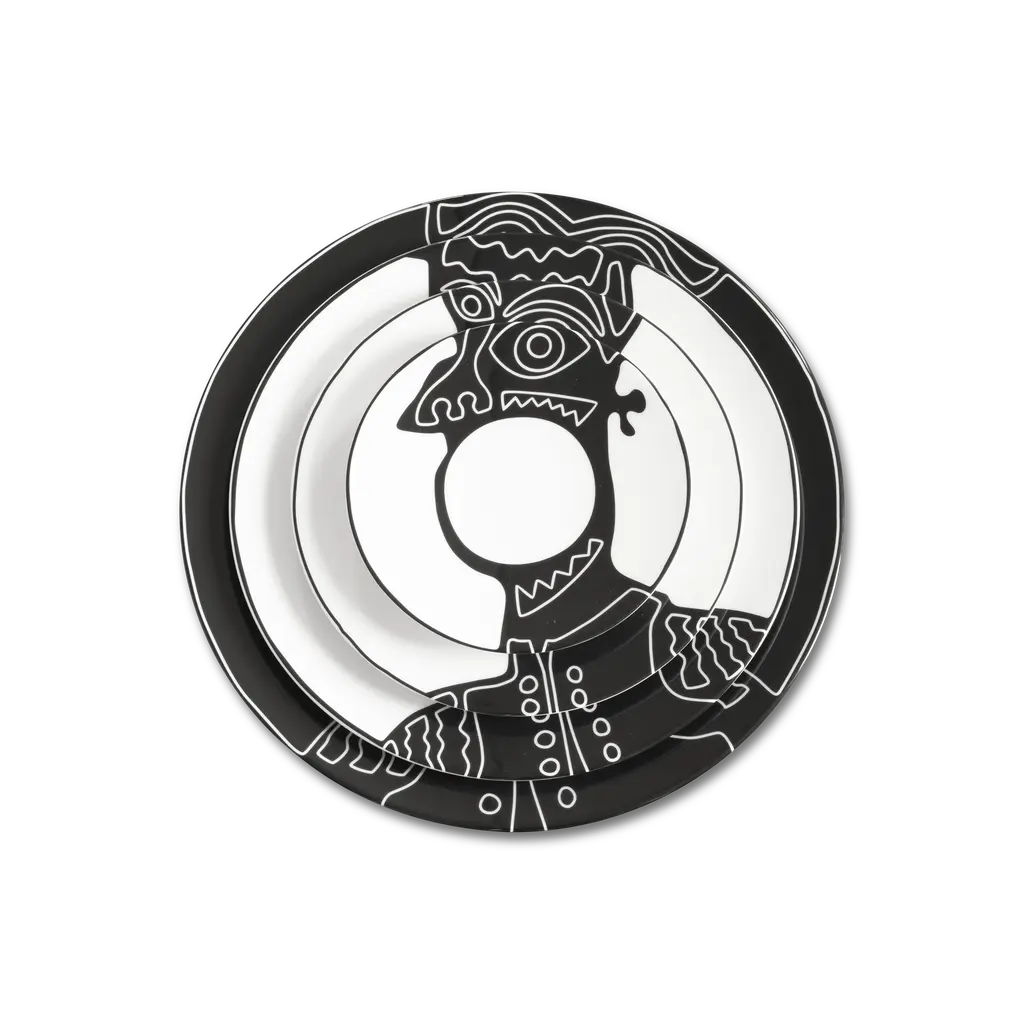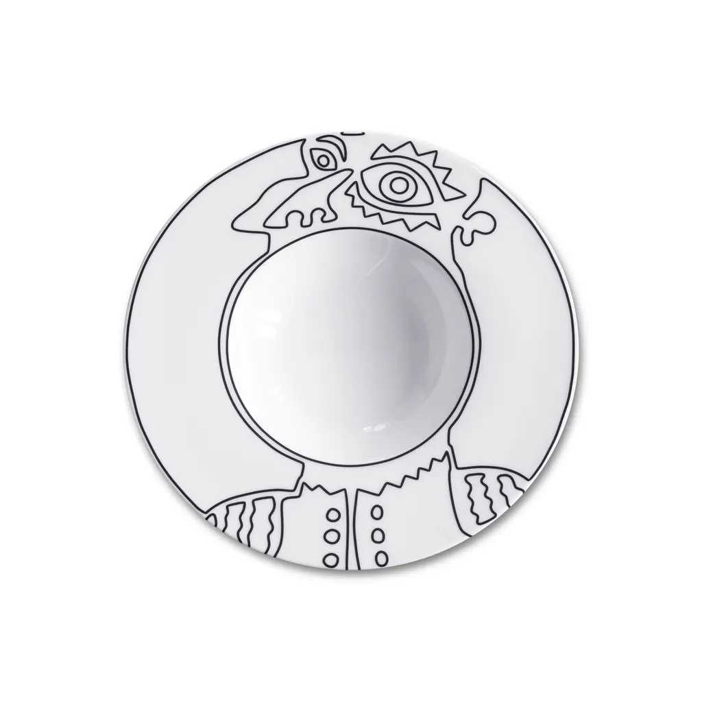 Display your opinion of art in contemporary design with a dinnerware set that is both creative and fun. Created by Patrick Knoch, an architect and designer with a background in fine arts, the Opinion White collection brings an imaginative accent to a dining room. The design is a true conversation starter and features a line illustration completed with predominantly light hues and black accents. Manufactured in Limoges, France, the Opinion White dinnerware collection is as durable and high-quality as it is distinctive. This set includes plates and bowls as well as teacups with saucers. Also available in dark and pastel versions.