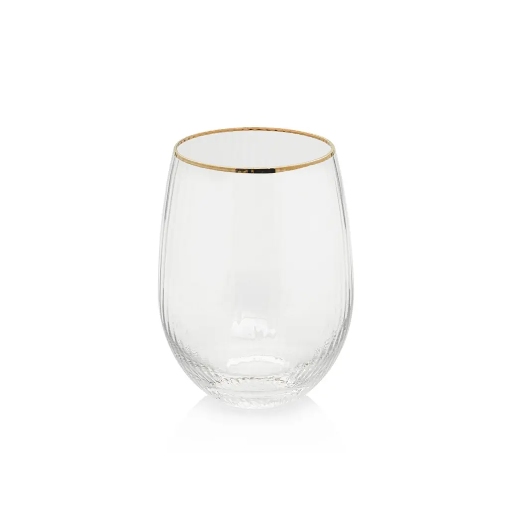 Update your glassware collection with the classic and simple Optic All-Purpose Glasses. Featuring clear glass with gold rim, these glasses are perfect for serving specialty liquor drinks. Use them on their own or pair them with other pieces from the Optic Collection for an elegant, coordinated look. • Set of 6 drinking glasses • Made of quality glass • Features textured finish with gold rim • Capacity: 18.26 oz. / 540 ml • Measures 3.75" diameter x 4.75"H • Hand wash only