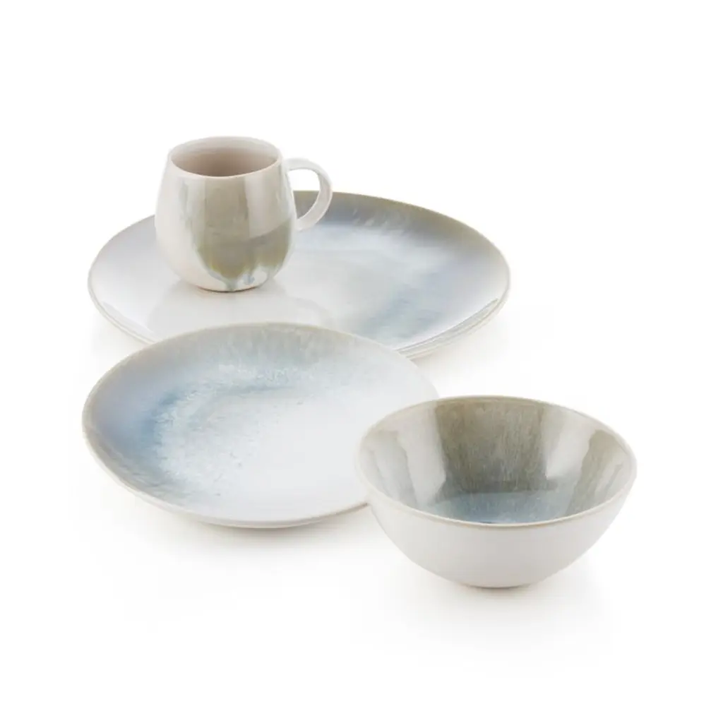 A wash in serene shades of green, grey and blue, our Ora dinnerware enchants with the unpredicatable nature of reactive glaze. Ora's simple coupe shapes make the perfect canvas for the hand-applied glaze to sheet, pool and crackle in captivating array, unique to each piece. Suggestive of water washing over a sandy beach, Ora sets a striking table for casual dinners as well as formal affairs.