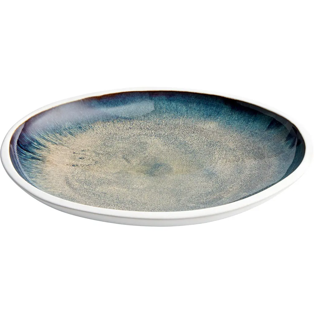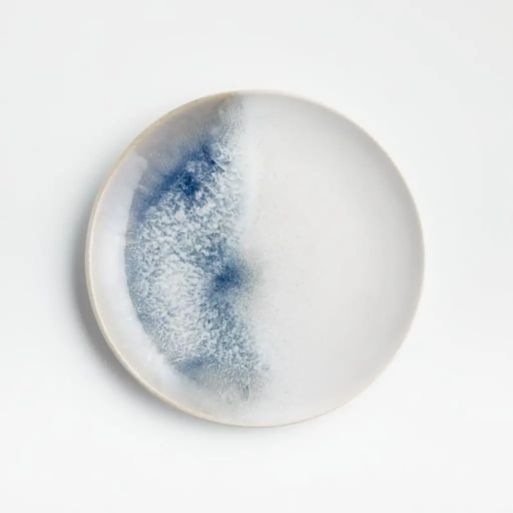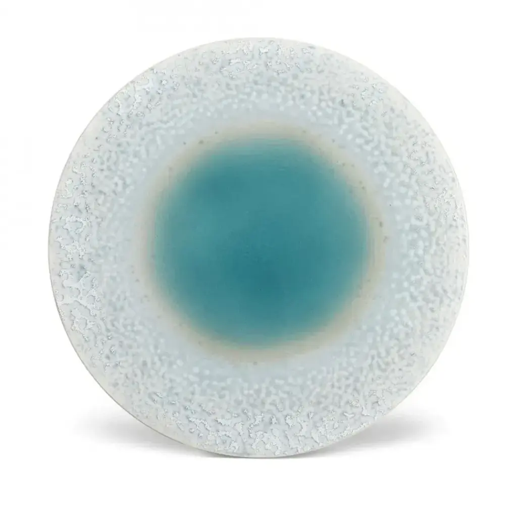 Awash in serene shades of green, grey and blue, our Ora salad plate enchants with clean lines and the unpredictable nature of reactive glaze. Hand-applied glaze sheets, pools and crackles on the plate in a captivating array that's unique to each piece. Suggestive of water washing over a sandy beach, Ora sets a striking table for casual dinners as well as formal affairs.