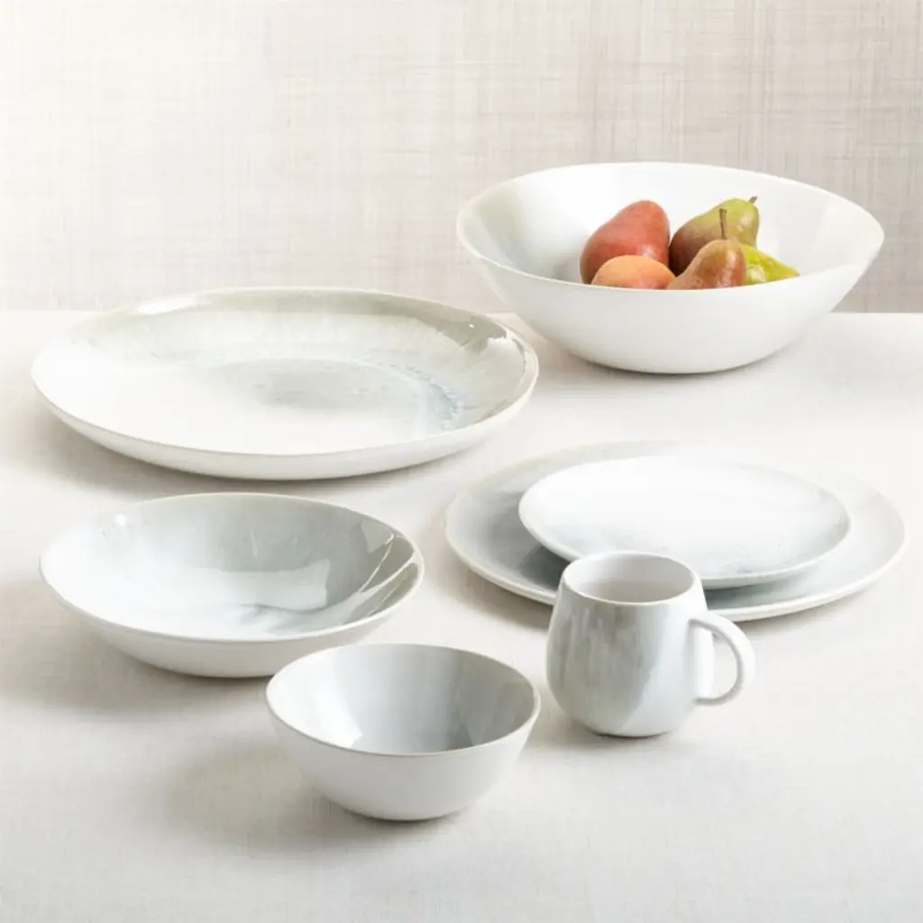 Awash in serene shades of green, grey and blue, our Ora salad plate enchants with clean lines and the unpredictable nature of reactive glaze. Hand-applied glaze sheets, pools and crackles on the plate in a captivating array that's unique to each piece. Suggestive of water washing over a sandy beach, Ora sets a striking table for casual dinners as well as formal affairs.