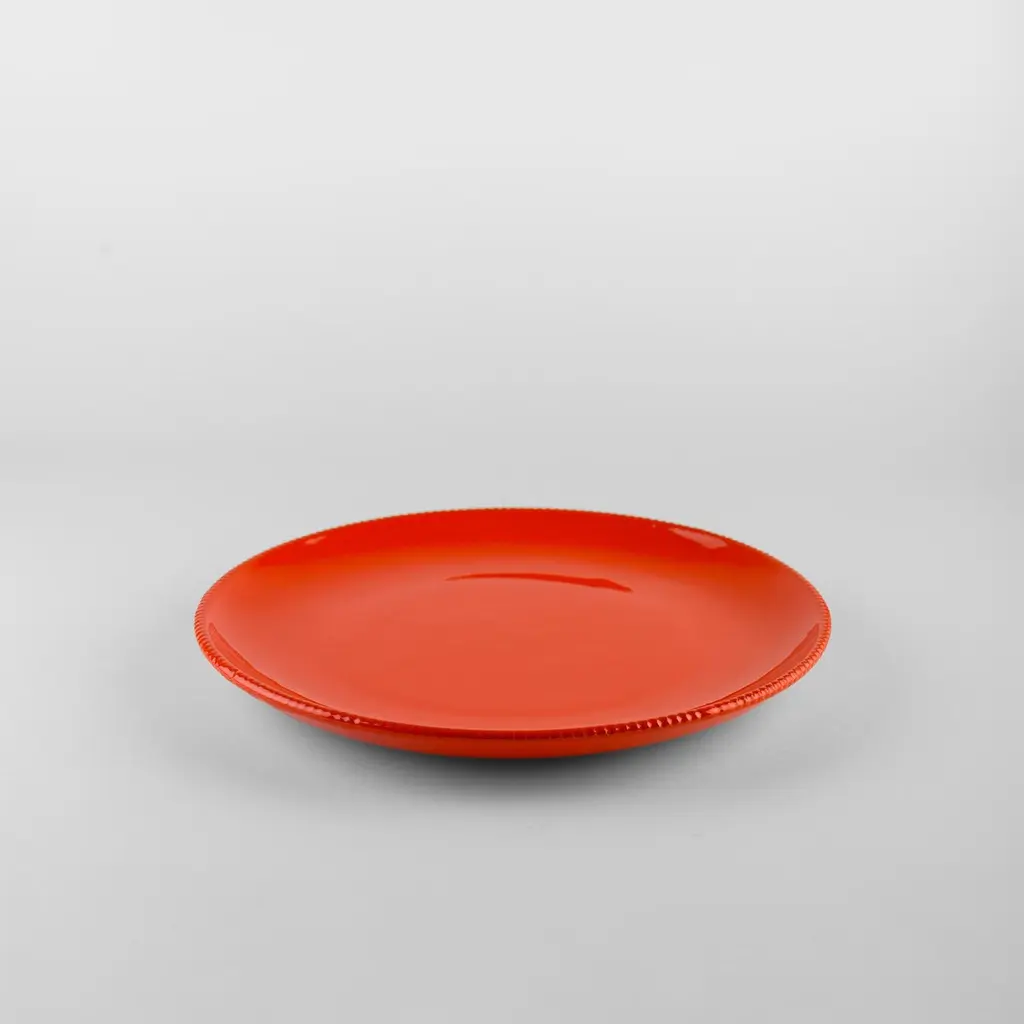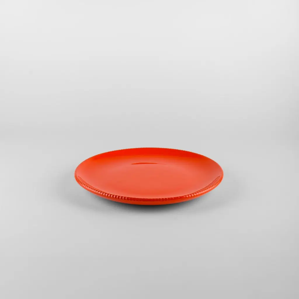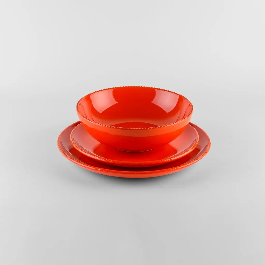 Orange Crenellated Plates: Soup, Holder, Side Plate For 4 Handmade In Italy 2024