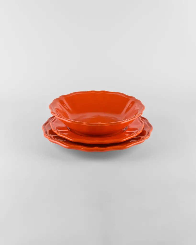 Orange Soup Plates Serve: Soup, Holder, Side Plate For 4. Handmade In Italy 2024