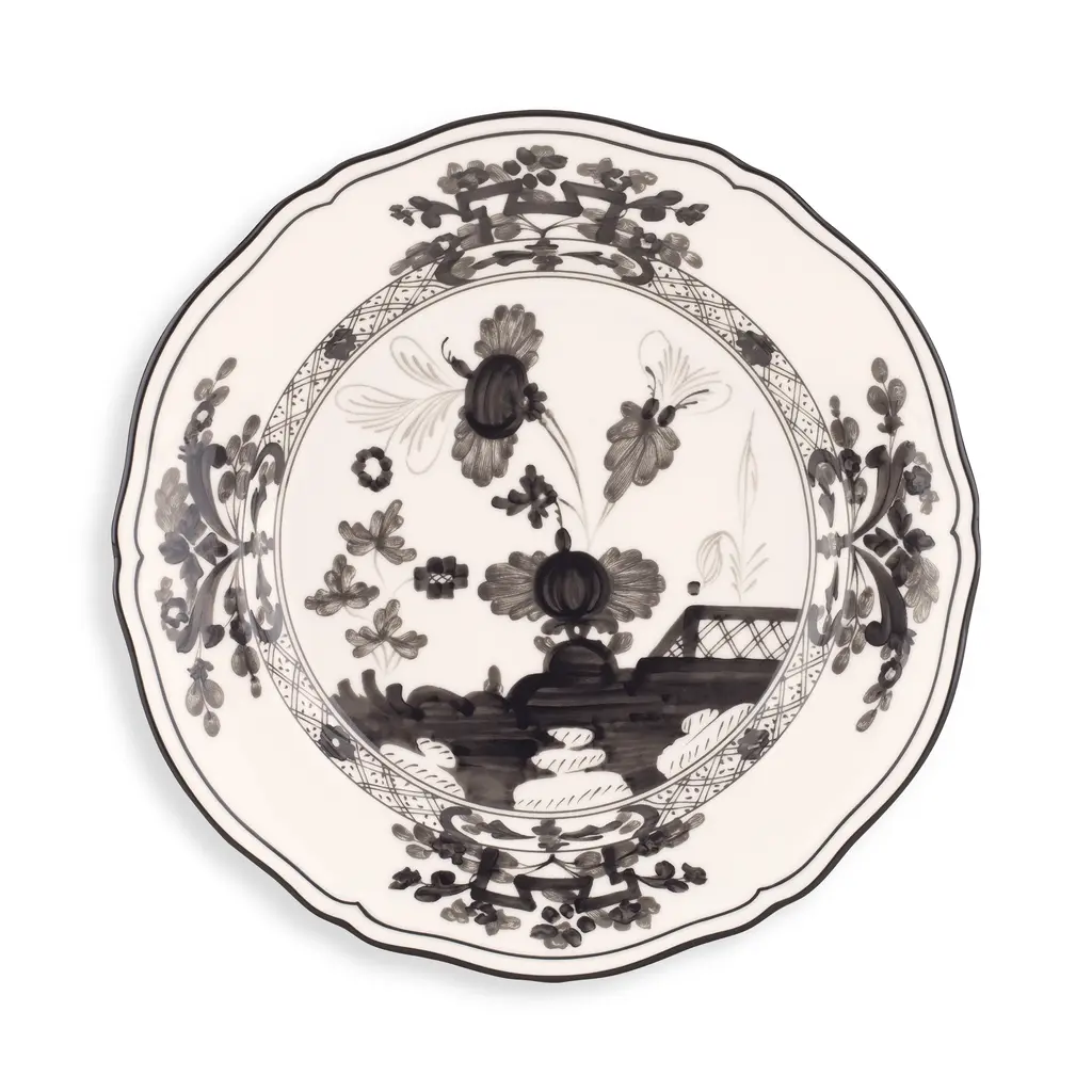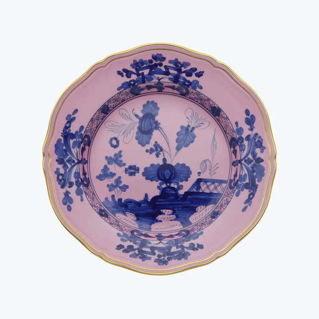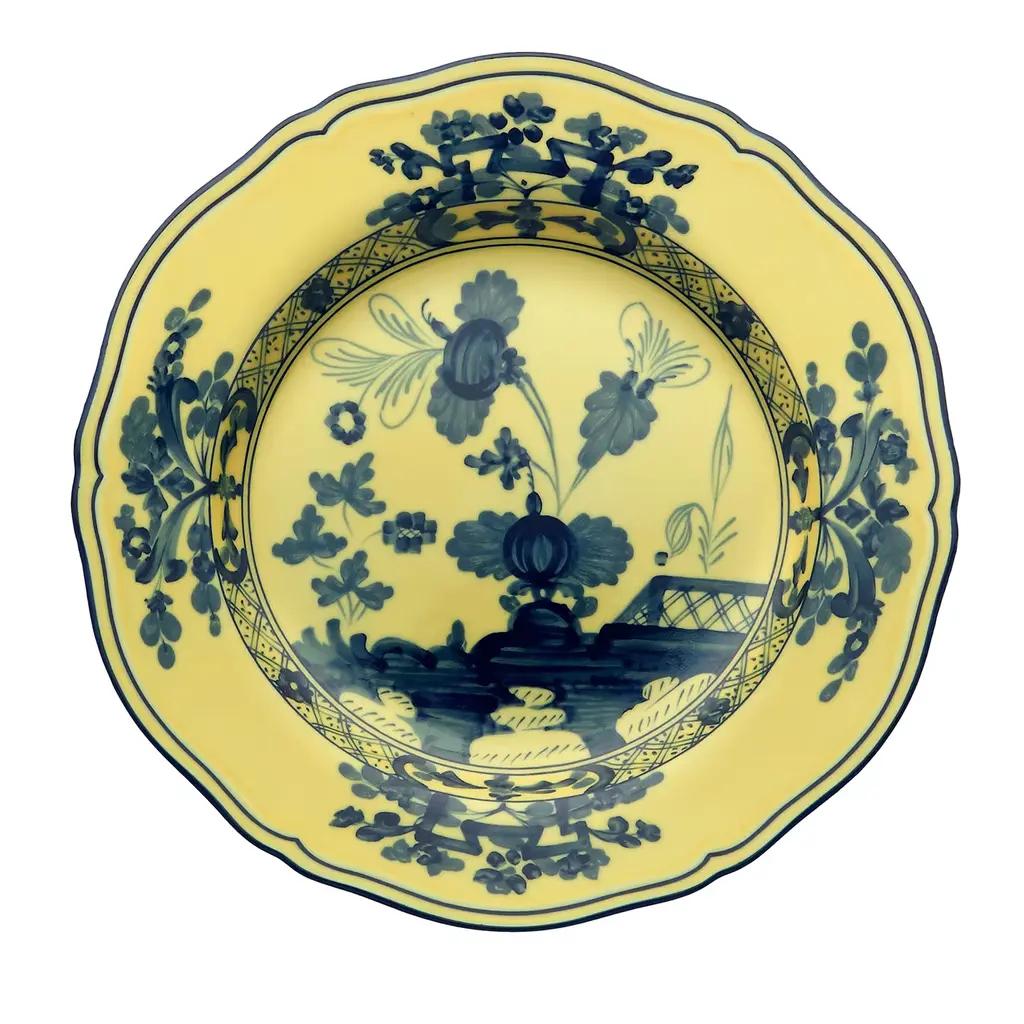 The Oriente Flat Dessert Plate is a stunning piece of porcelain dinnerware from Italian brand Ginori 1735 that's not only a work of art but also a piece of history. Founded by Marquis Carlo Ginori in 1735, its expert artisans have created dinnerware that merges timeless elegance with beautiful craftsmanship ever since. Full of lovely details, this dessert plate, available is several striking colors, brings a touch of wonder to your tabletop.It can be used as either a dessert plate or salad plate, as they're generally very similar in size.
