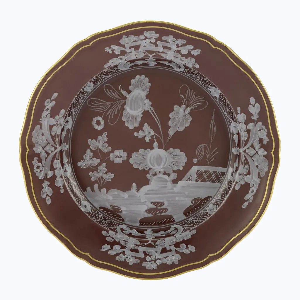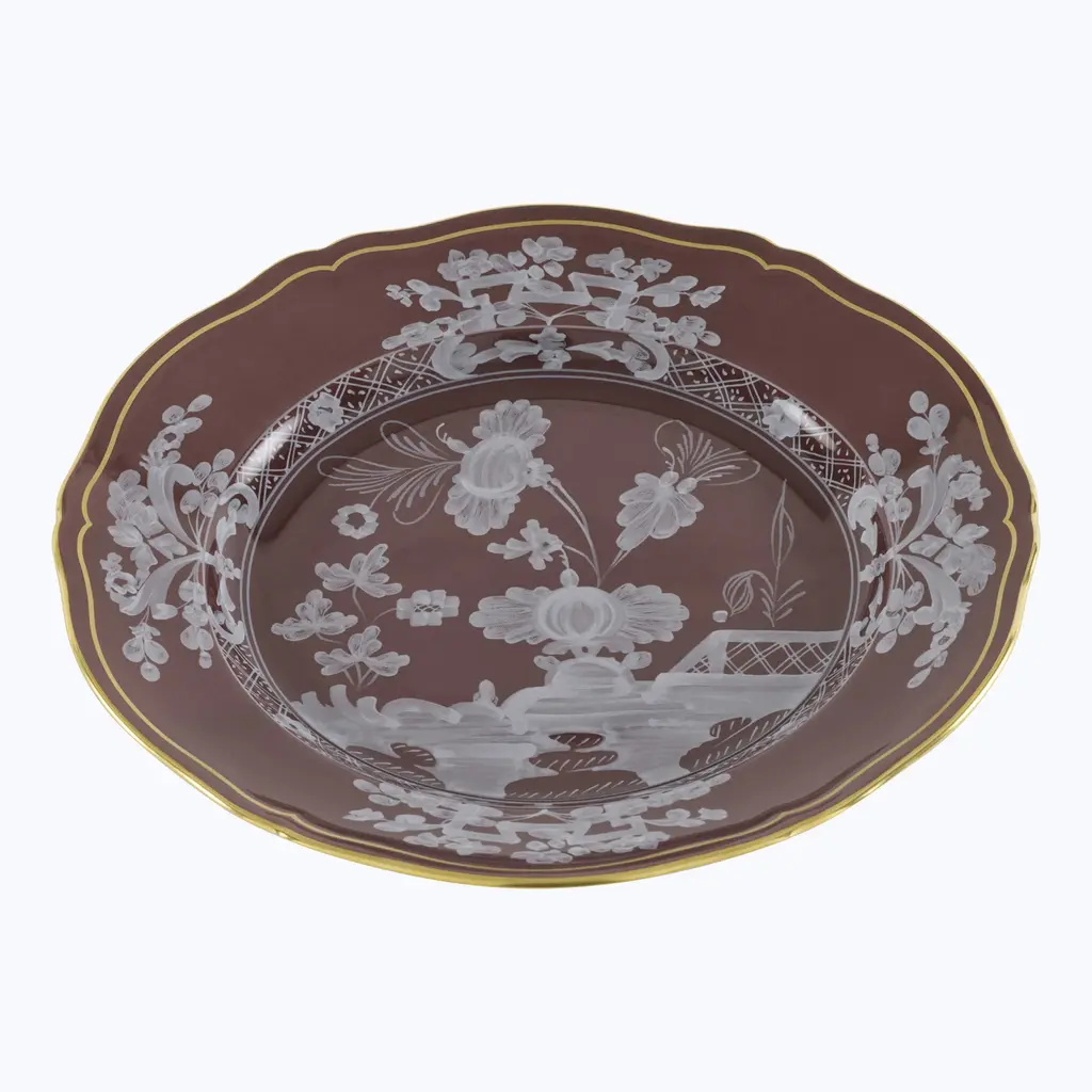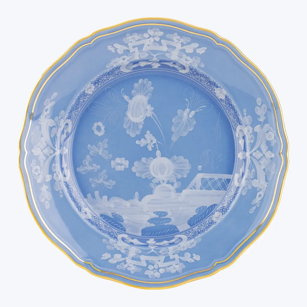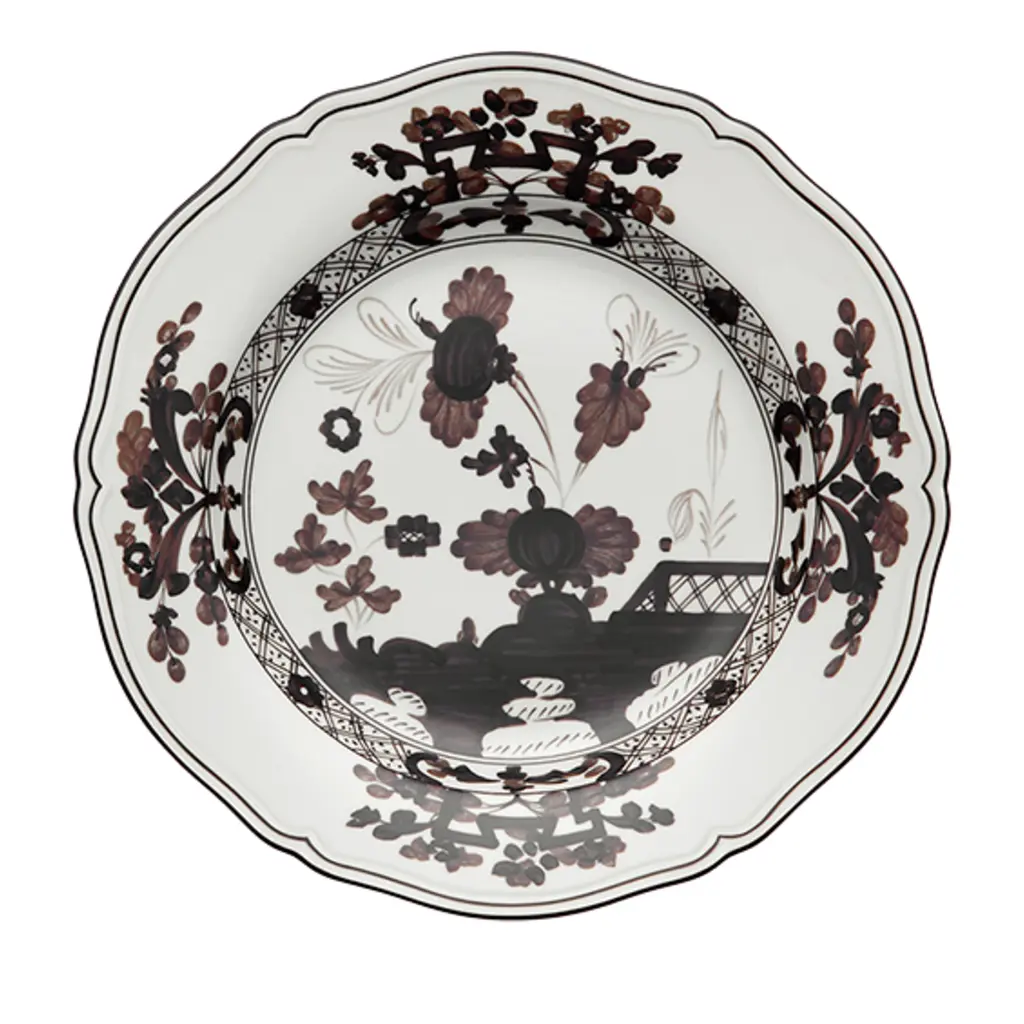 The Oriente Flat Dessert Plate is a stunning piece of porcelain dinnerware from Italian brand Ginori 1735 that's not only a work of art but also a piece of history. Founded by Marquis Carlo Ginori in 1735, its expert artisans have created dinnerware that merges timeless elegance with beautiful craftsmanship ever since. Full of lovely details, this dessert plate, available is several striking colors, brings a touch of wonder to your tabletop.It can be used as either a dessert plate or salad plate, as they're generally very similar in size.