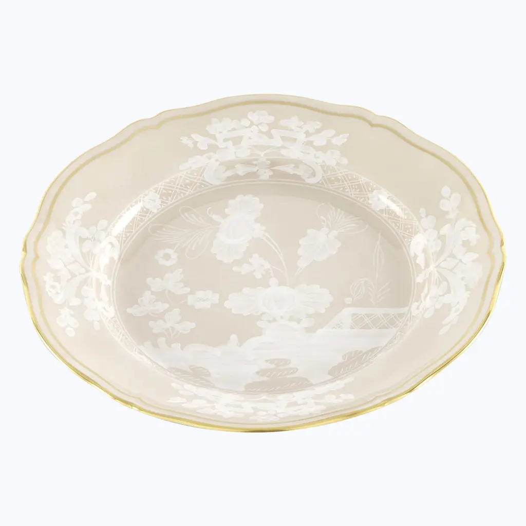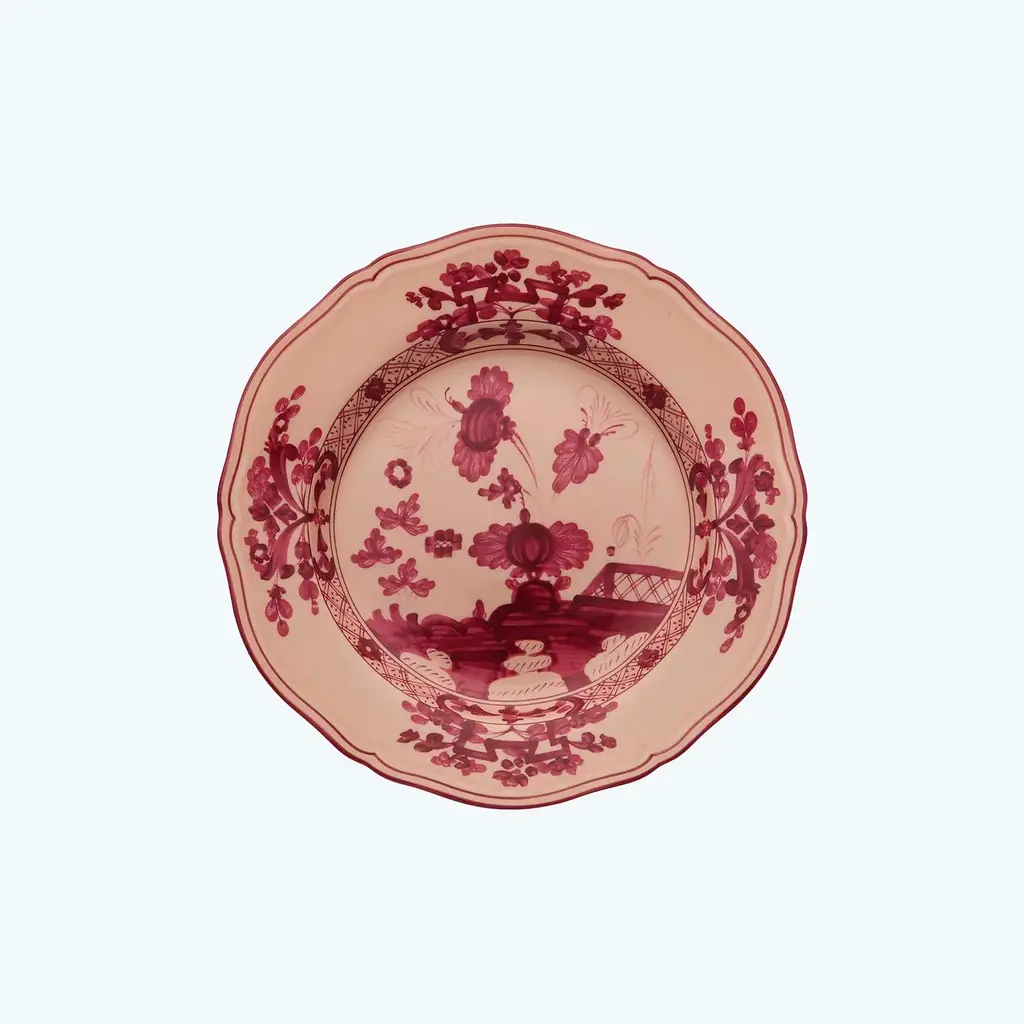 The Oriente Flat Dessert Plate is a stunning piece of porcelain dinnerware from Italian brand Ginori 1735 that's not only a work of art but also a piece of history. Founded by Marquis Carlo Ginori in 1735, its expert artisans have created dinnerware that merges timeless elegance with beautiful craftsmanship ever since. Full of lovely details, this dessert plate, available is several striking colors, brings a touch of wonder to your tabletop.It can be used as either a dessert plate or salad plate, as they're generally very similar in size.