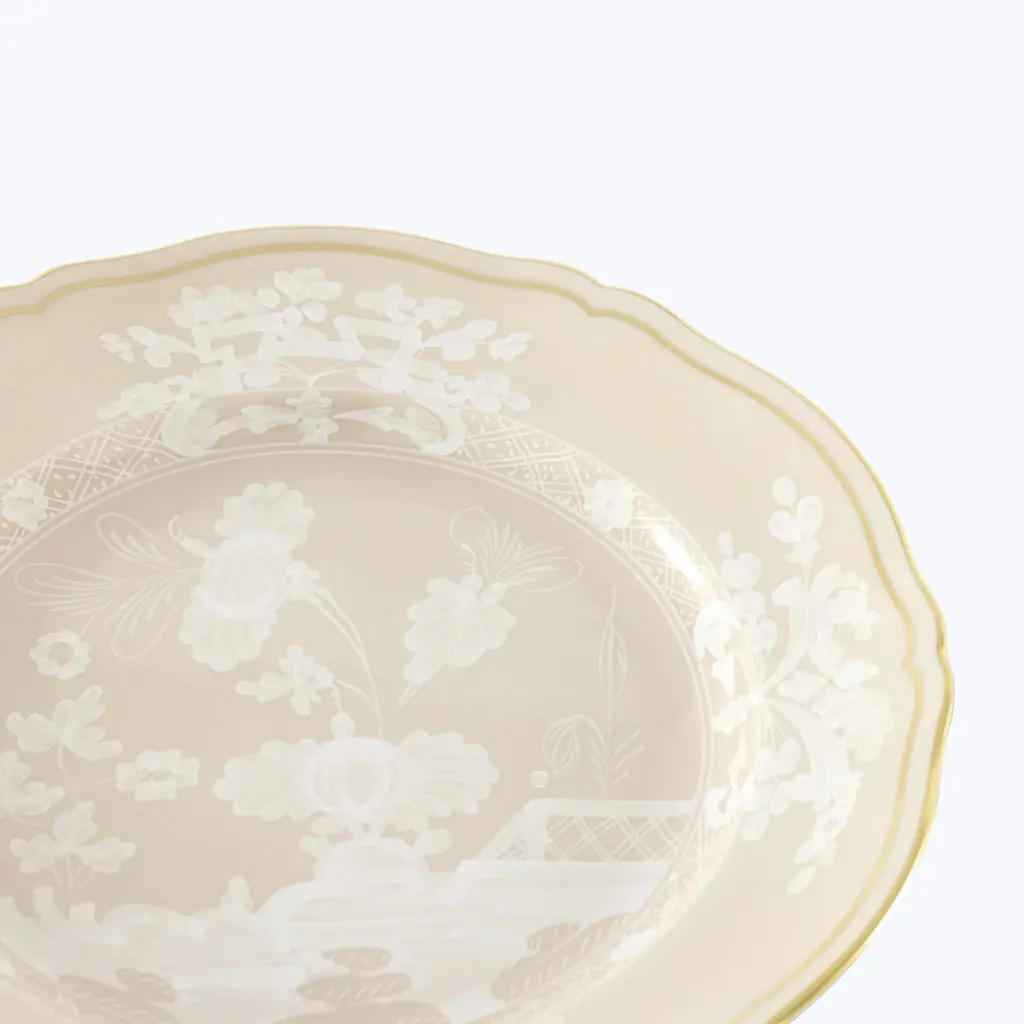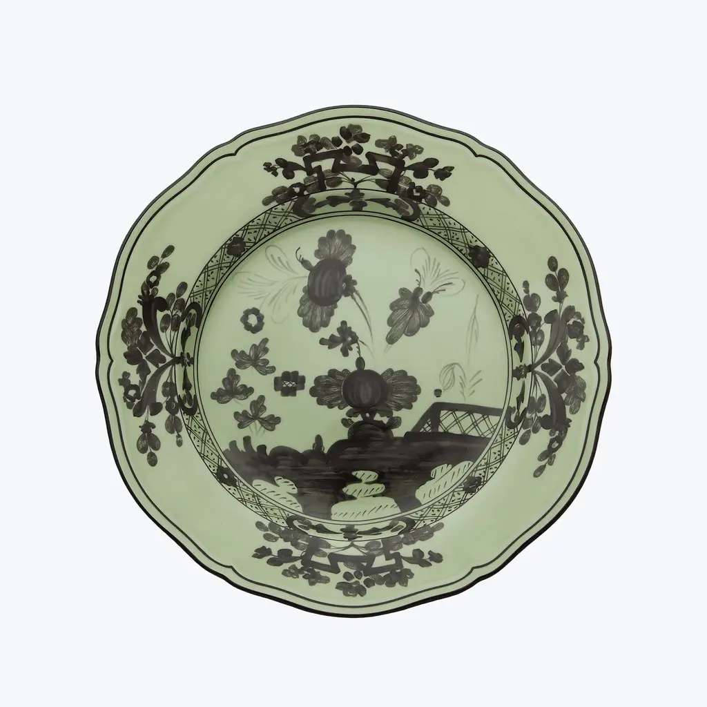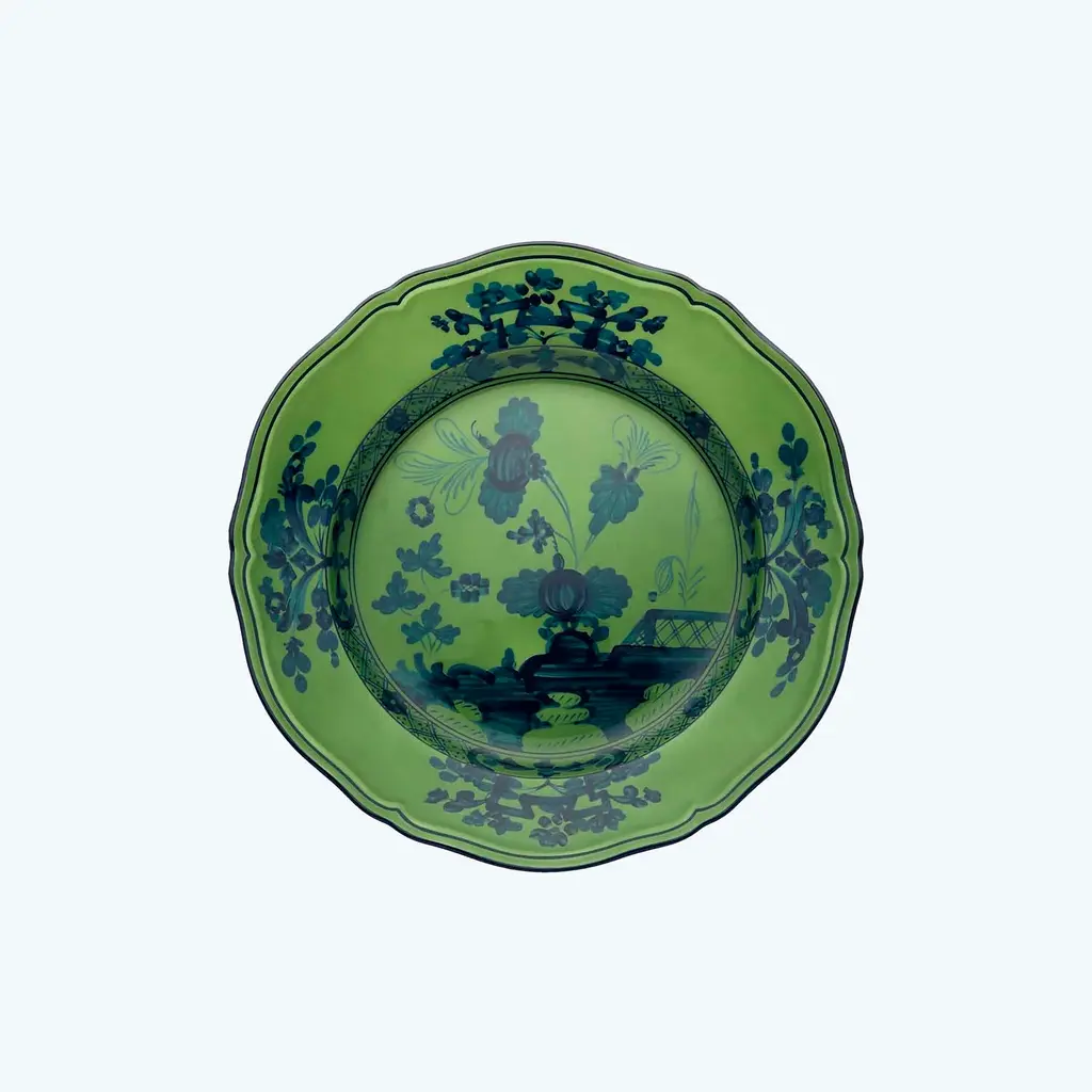 The Oriente Flat Dessert Plate is a stunning piece of porcelain dinnerware from Italian brand Ginori 1735 that's not only a work of art but also a piece of history. Founded by Marquis Carlo Ginori in 1735, its expert artisans have created dinnerware that merges timeless elegance with beautiful craftsmanship ever since. Full of lovely details, this dessert plate, available is several striking colors, brings a touch of wonder to your tabletop.It can be used as either a dessert plate or salad plate, as they're generally very similar in size.
