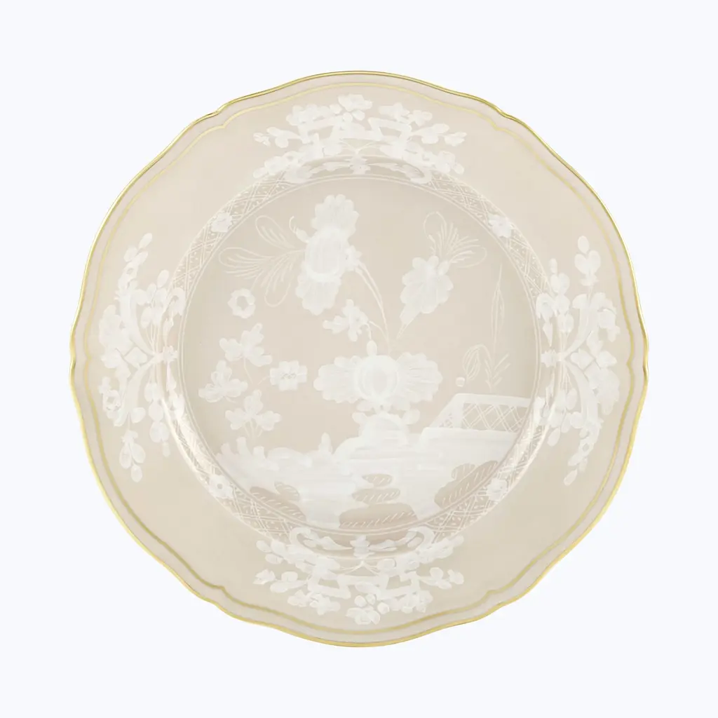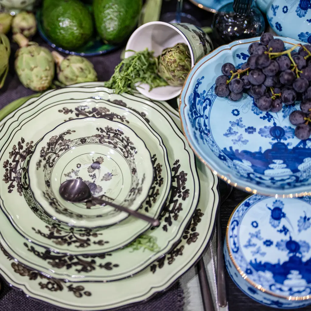 The Oriente Flat Dessert Plate is a stunning piece of porcelain dinnerware from Italian brand Ginori 1735 that's not only a work of art but also a piece of history. Founded by Marquis Carlo Ginori in 1735, its expert artisans have created dinnerware that merges timeless elegance with beautiful craftsmanship ever since. Full of lovely details, this dessert plate, available is several striking colors, brings a touch of wonder to your tabletop.It can be used as either a dessert plate or salad plate, as they're generally very similar in size.