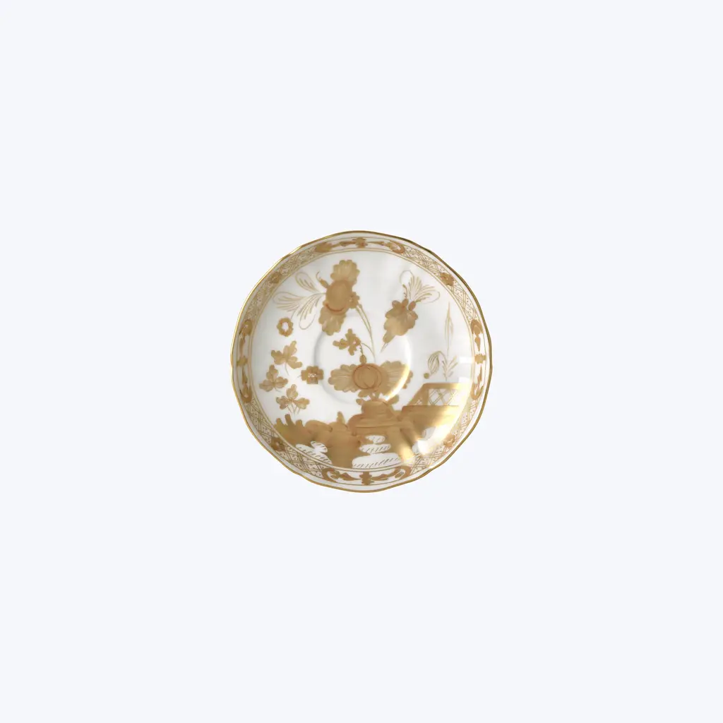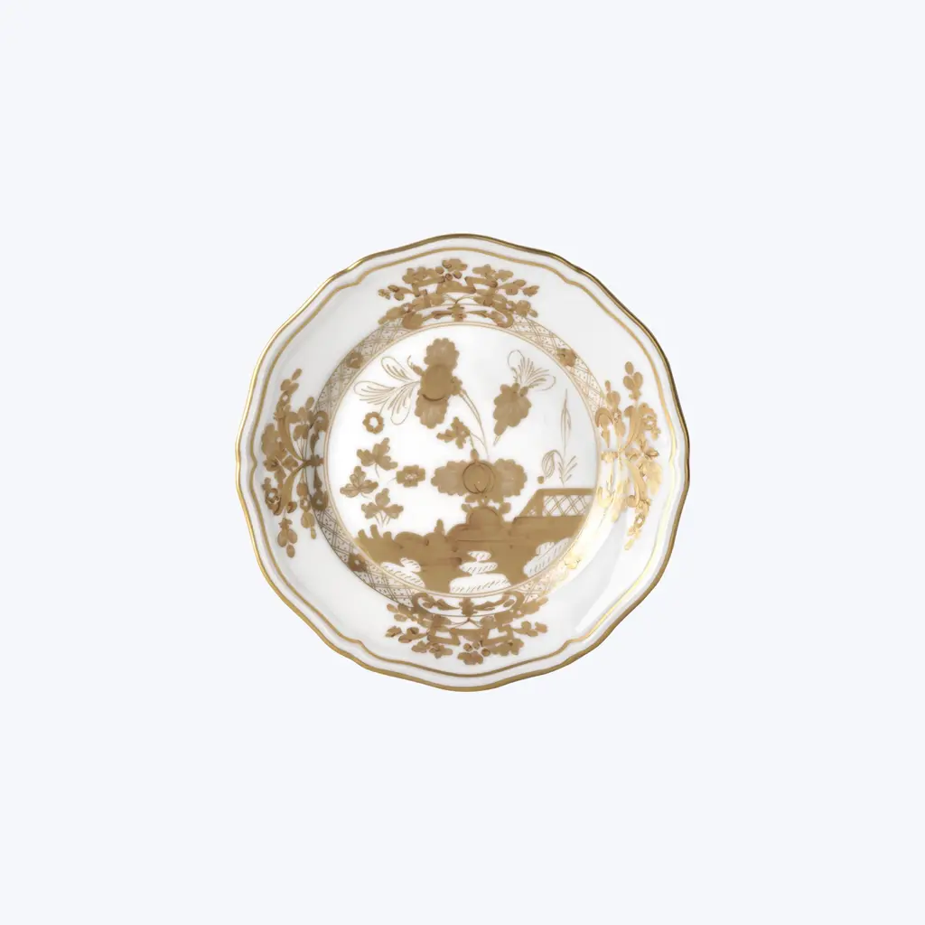 The mastery and technique of Italian craftsmanship and an original and timeless design: the two porcelain plates always make every mise en place sophisticated. The floral ornament in pure gold evokes the delicate Garofano (Carnation), a symbol of passion and artistic dedication, which stands out on the distinctive intense red of the Rubrum color. The service is completed by placeholders, plates, bottoms and bread plates from the Oriente Italiano Gold Collection for refined tables, also in the Aurum version, with pure gold decoration on fine white porcelain, or in combination with the articles of Oriente Italiano, for always unique and original color combinations.