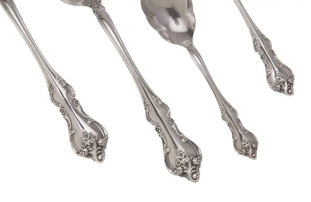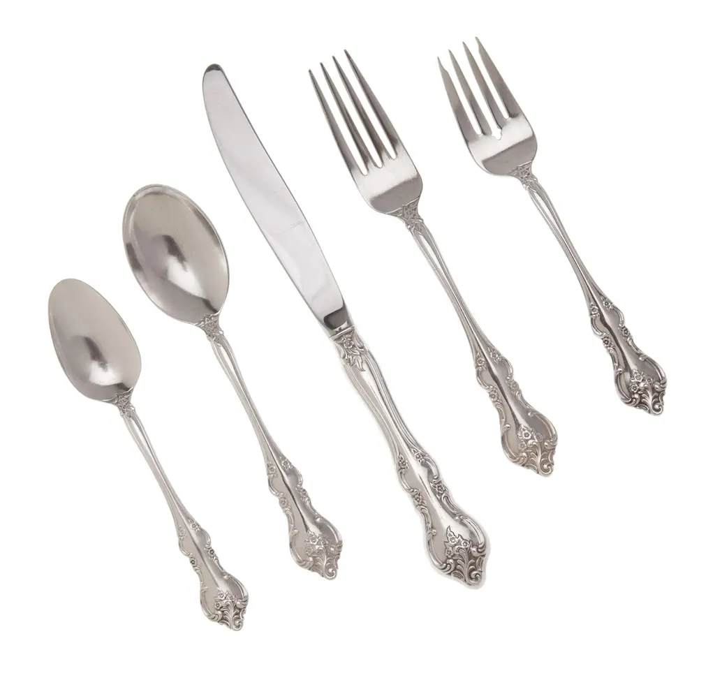 International Deep Silver Flatware in the Orleans Pattern by International Silver. Each place setting is in pristine, near perfect condition. There are 10 place settings available. Price reduced originally 99 per place setting!!