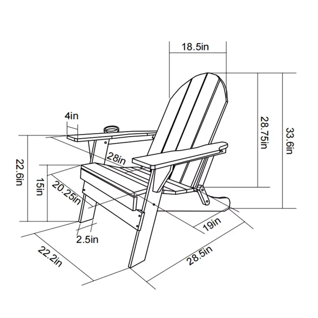 Relax outdoors with the ORRD Folding Adirondack Chair, crafted from durable HDPE composite material with a natural wood-like texture. Weather-resistant and easy to maintain, this chair folds for convenient storage and features dual cup holders to keep beverages close at hand. Perfect for patios, gardens, decks, or poolside lounging.