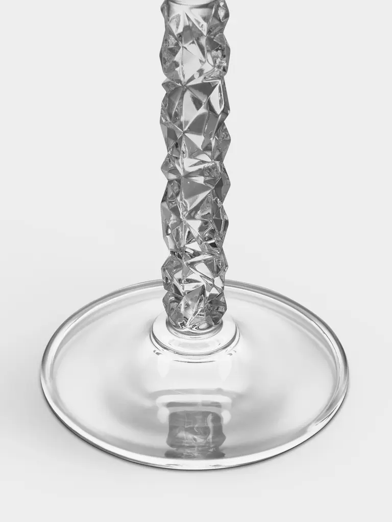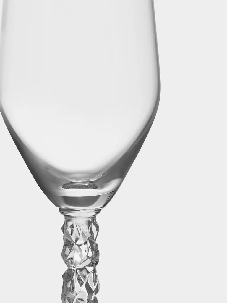 The Carat collection is based on a contemporary interpretation of the traditional cut glass for which Orrefors is world-renowned. Carat Champagne has a stem covered with the collection’s characteristic asymmetrical motif, which produces beautiful reflections of light in the crystal. The champagne glass holds 8 oz and its flute shape makes it ideal for sparkling beverages, with the narrow bowl preserving the bubbles in the drink. Designed by Lena Bergström.
