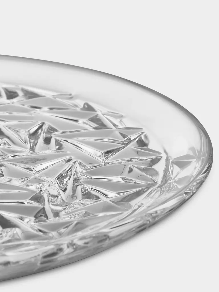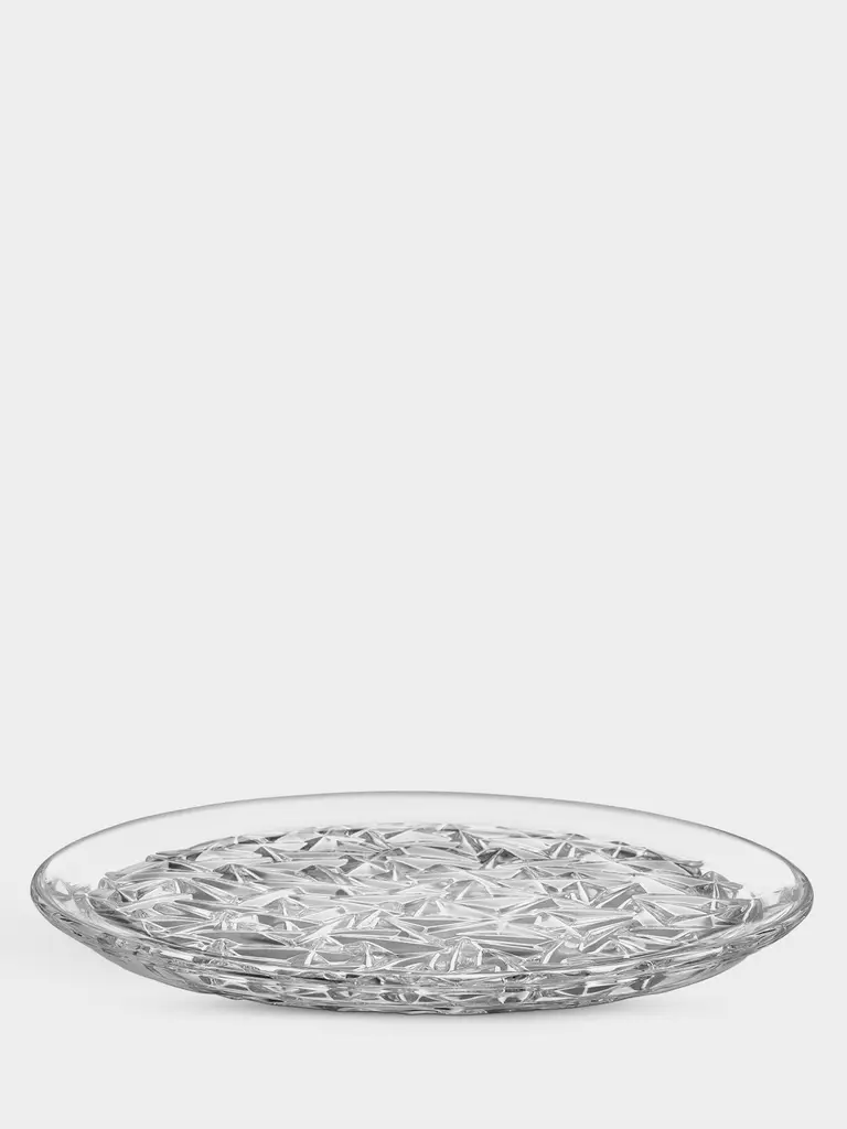 The Carat collection is based on a contemporary interpretation of the traditional cut glass for which Orrefors is world-renowned. The irregular geometry produces beautiful reflections of light in the crystal. Use the plate as a serving dish, or on its own as a table decoration. Designed by Lena Bergström.