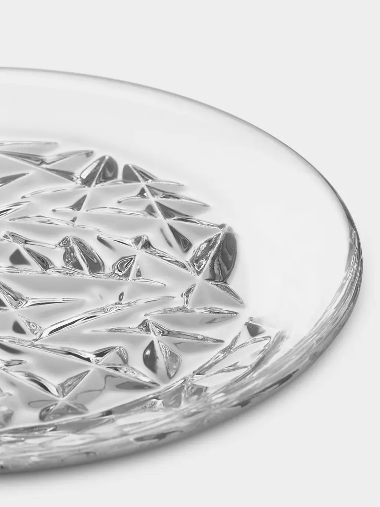 The Carat collection is based on a contemporary interpretation of the traditional cut glass for which Orrefors is world-renowned. The irregular geometry produces beautiful reflections of light in the crystal. Use the side plate as a serving dish for appetizers or desserts. Designed by Lena Bergström.