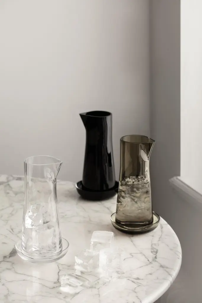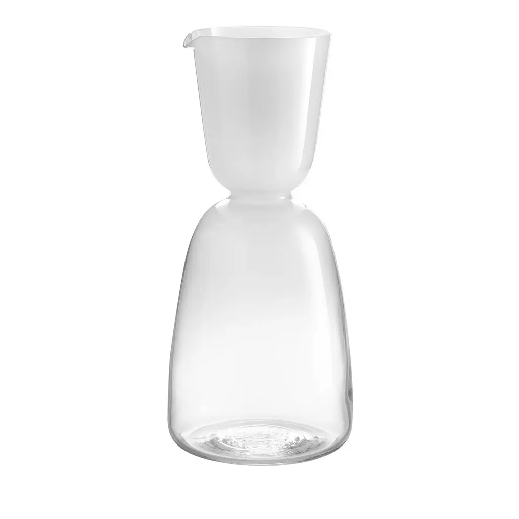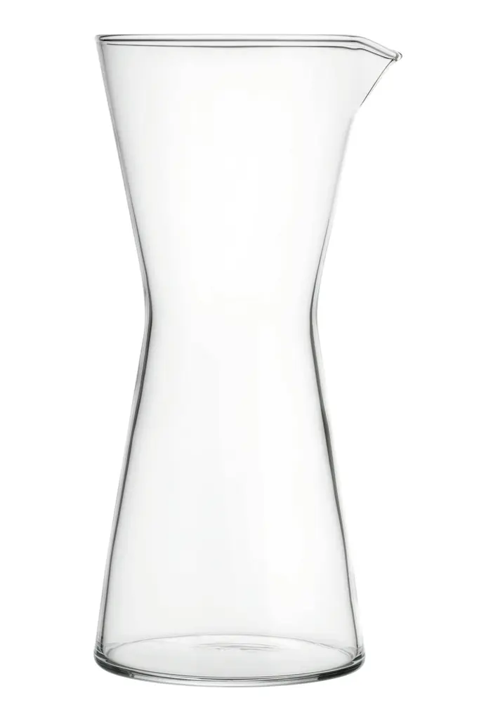 The Informal carafe in clear glass from Orrefors holds 34 oz and is the centerpiece of the collection. It has a characteristic spout and includes a small bowl that can be used as a coaster for the carafe. The bowl is also perfect for serving nuts, olives, or other snacks. The carafe and bowl are mouth-blown. Designed by Björn Dahlström.