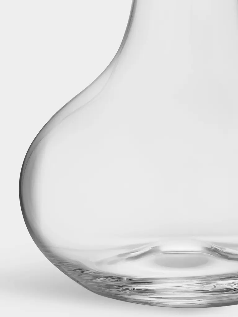 More Carafe from Orrefors holds 50 oz and is intended for both water and wine. Aerate wine in the carafe by filling it to the widest point. The carafe has an indented bottom, which provides a good grip for serving beverages. Designed by Erika Lagerbielke.