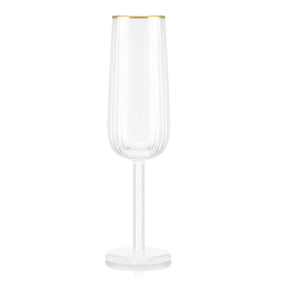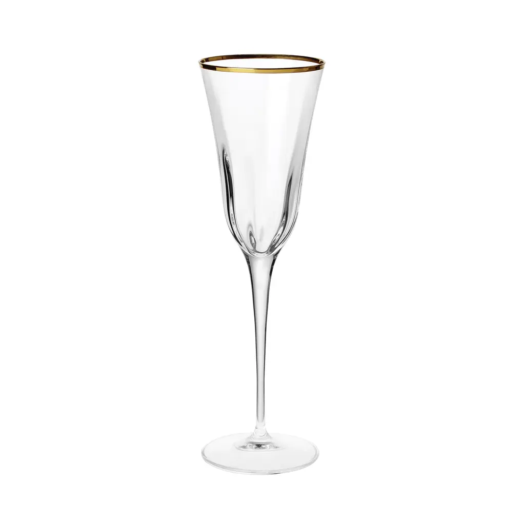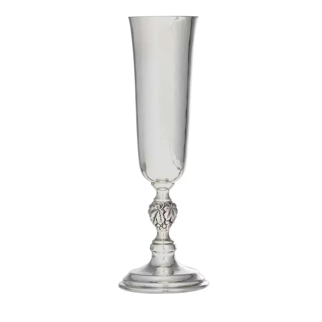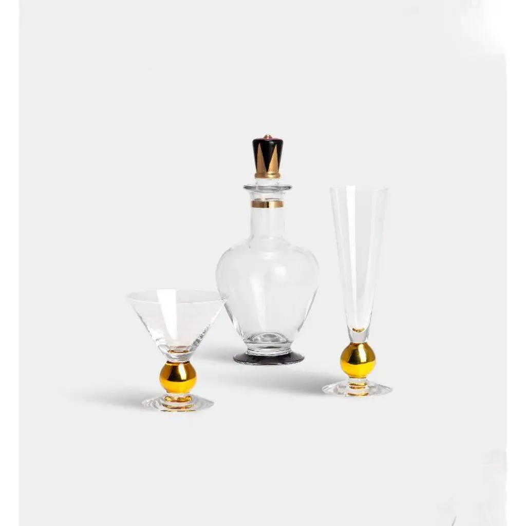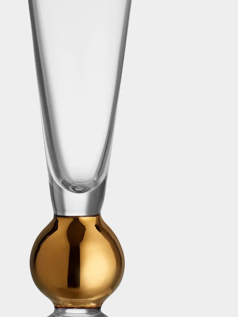 In 1991, Gunnar Cyrén designed the Nobel flute for the 90th anniversary of the Nobel Prize. The crystal champagne glass is hand-painted with details in real 21 karat gold. The bowl, which holds 6 oz, has a long and narrow shape to preserve the bubbles in sparkling beverages. To this day, Nobel Prize-winners and royalty use the champagne glasses from the Orrefors Nobel collection every December at Stockholm City Hall. The glass is mouth-blown in Sweden.