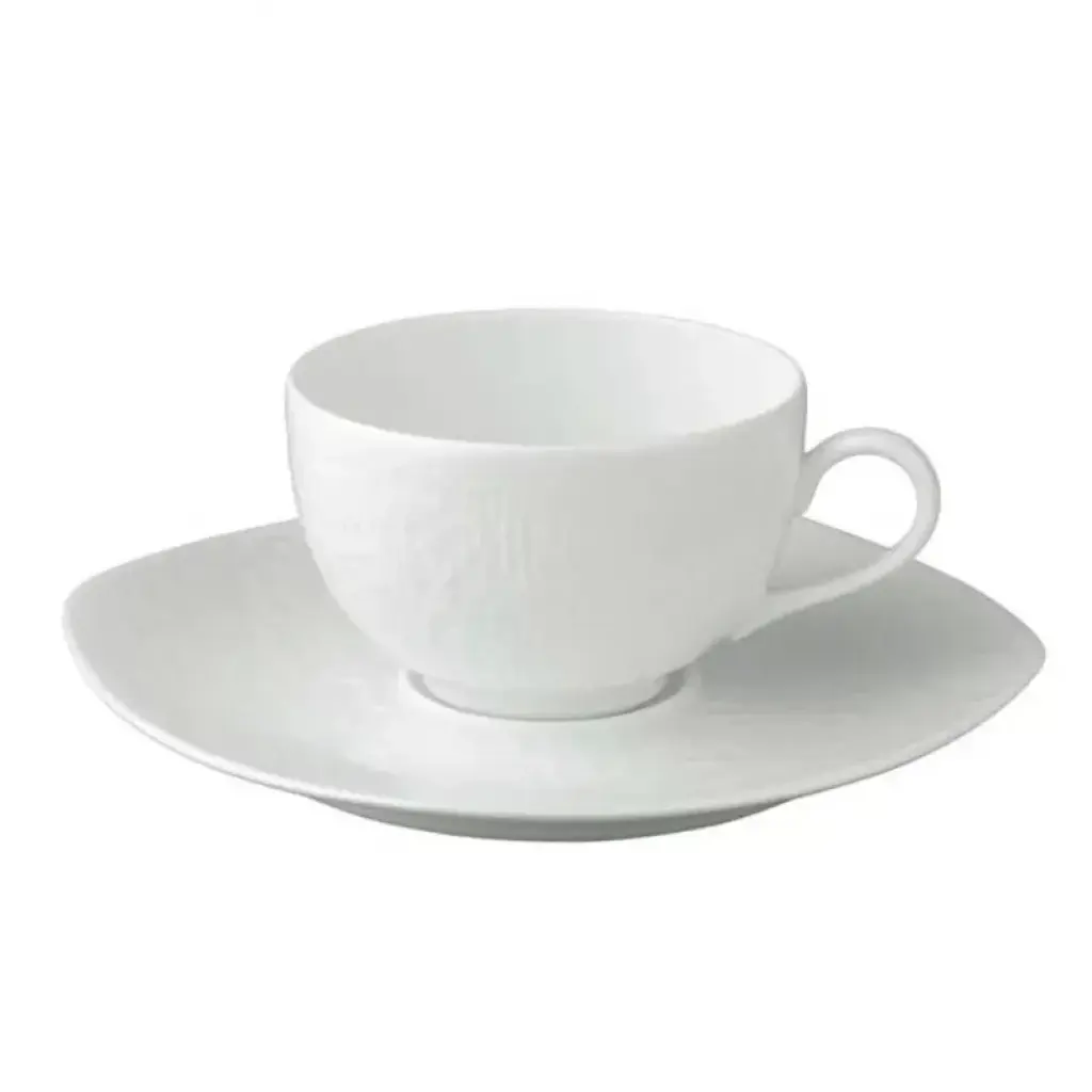 Orsay Dinnerware from Haviland is a simply classic design of platinum and white Limoges porcelain. 5-Piece Place setting includes Dinner plate, Dessert Plate, Bread & Butter Plate, Tea cup & Tea Saucer. Haviland Porcelain was founded by David Haviland, an American who moved from New York to France after he was brought a broken tea cup to match and recognized the quality and color of the old piece of porcelain. Filled with curiosity, he went to France to find the factory where the cup had been made, but the samples he was sent were not up to his standards. So in 1841, he moved to Limoges to set up his own factory. Traditional French dinnerware was usually produced in Limoges and sent to Paris for decoration. Haviland insisted on setting up a studio within his factory to have more control over the designs. Renowned artists, including Cocteau, Dali, and Kandinsky have played a role in the company's designs. Today, Haviland is one of the premier names in French porcelain dinnerware, sought by collectors all over the world. Clients have included the White House, Empress Eugenie, General de Gaulle, Jacques Chirac, the Emperor of Japan, and the Royal Court of Morocco.
