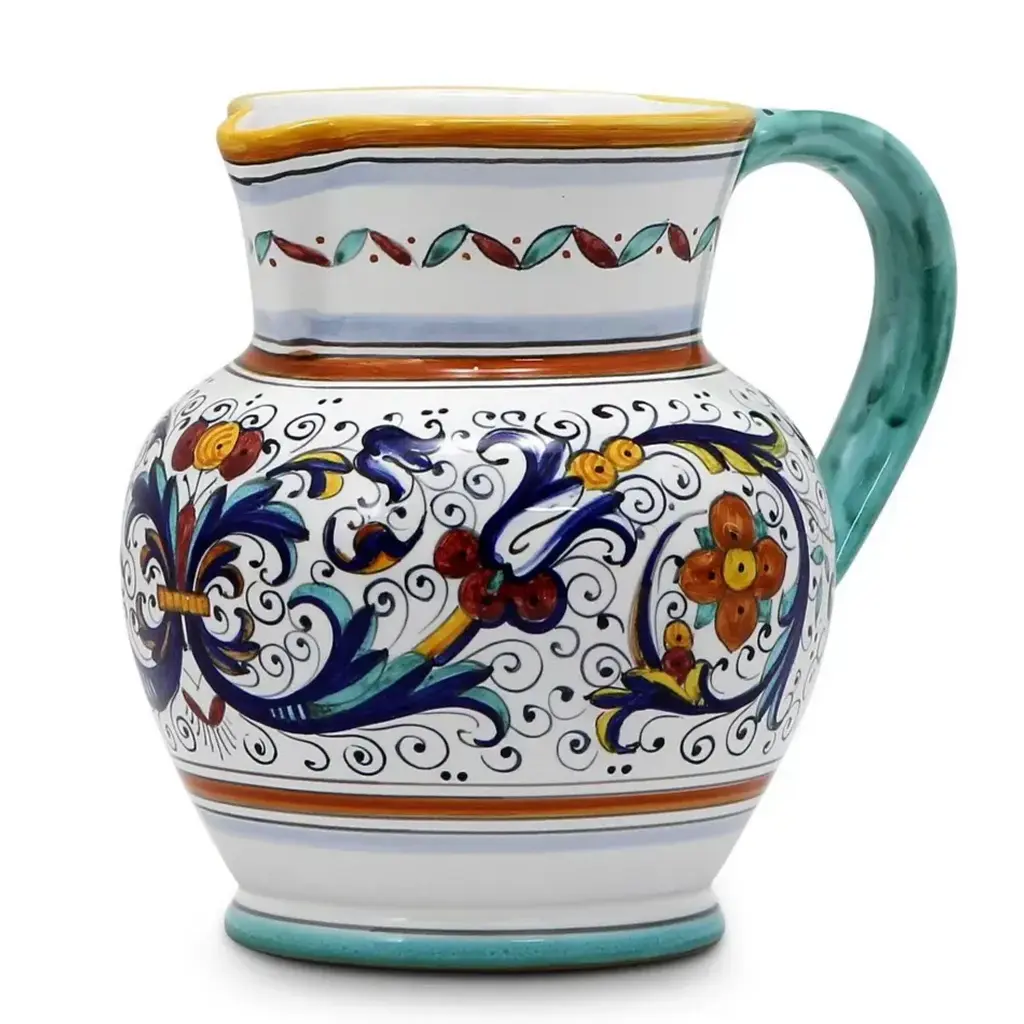 Orvieto Blue Rooster Deruta Pitcher (1.25 Liters/40 Oz/5 Cups) 6 In Rd X 6.5 High