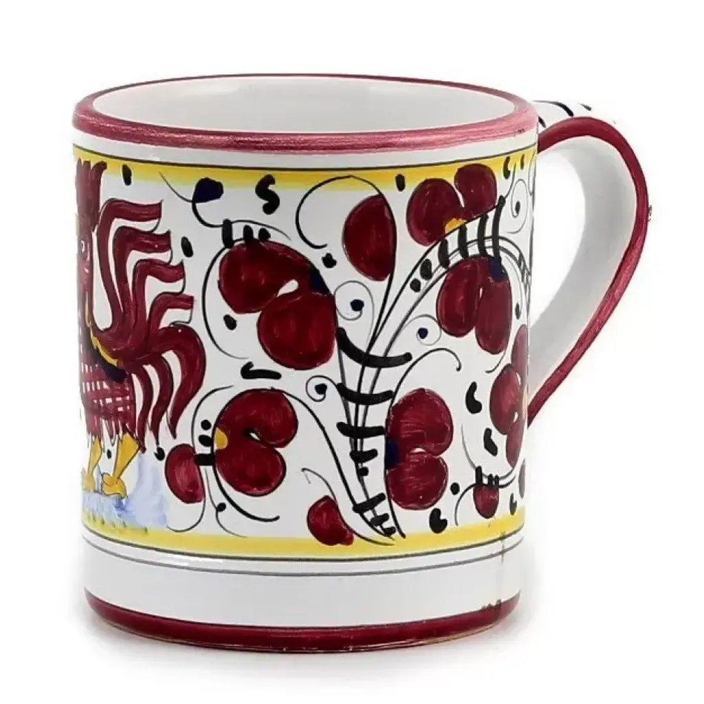 ORVIETO Green, Red, Blue Collections: The Orvieto (or Orvietano) design is a very old and traditional pattern that originated during the Renaissance in the hill-top town of Orvieto Italy. Truly one of Italy's most unique and interesting cities, Orvieto has a charming medieval character, mainly due to its celebrated Cathedral, a gem of Gothic architecture that took more than 100 years to build. The 'Galletto' (Rooster) pattern's main motif is a crowing rooster that symbolizes good wishes for blessings, prosperity and well-being. Hand made in Deruta-Italy. All Deruta of Italy products are lead and cadmium Free. Dishwasher Safe Not recommended for microwave use. Size (inches): 6.5 X 4 X 1 HIGH