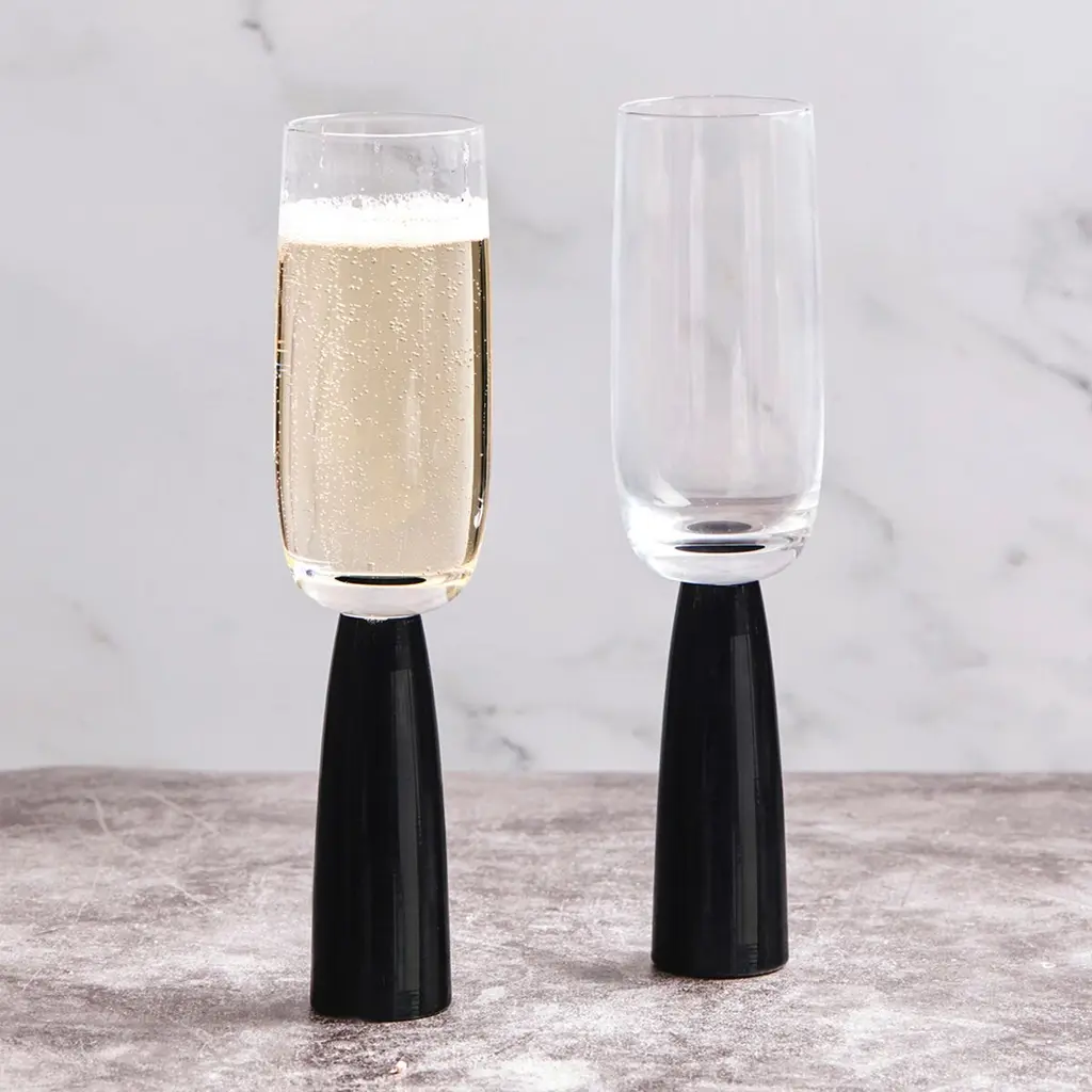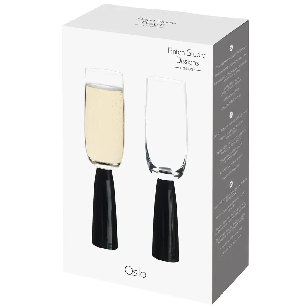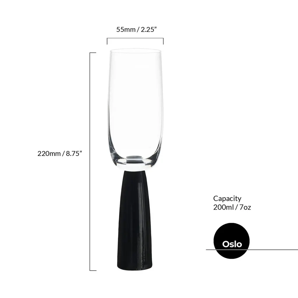 Embodying sleek Scandi style, these champagne flutes are contemporary with clean lines and well-rounded bowls. Their unique look comes from Oslo's signature thick, solid glass stem. The set is beautifully weighted and tactile, making it a perfect gift for special occasions.