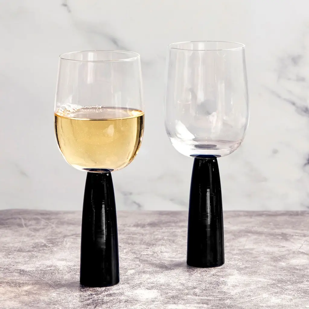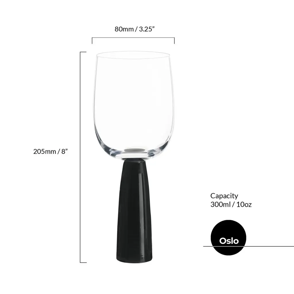 These wine glasses boast the same sleek Scandi style as the champagne flutes, with a contemporary design featuring smooth lines, well-rounded bowls, and an ice base. The stem is made from thick, solid glass, giving the set a unique Oslo look and feel. This beautifully weighted and tactile set makes a stunning gift for any wine lover.