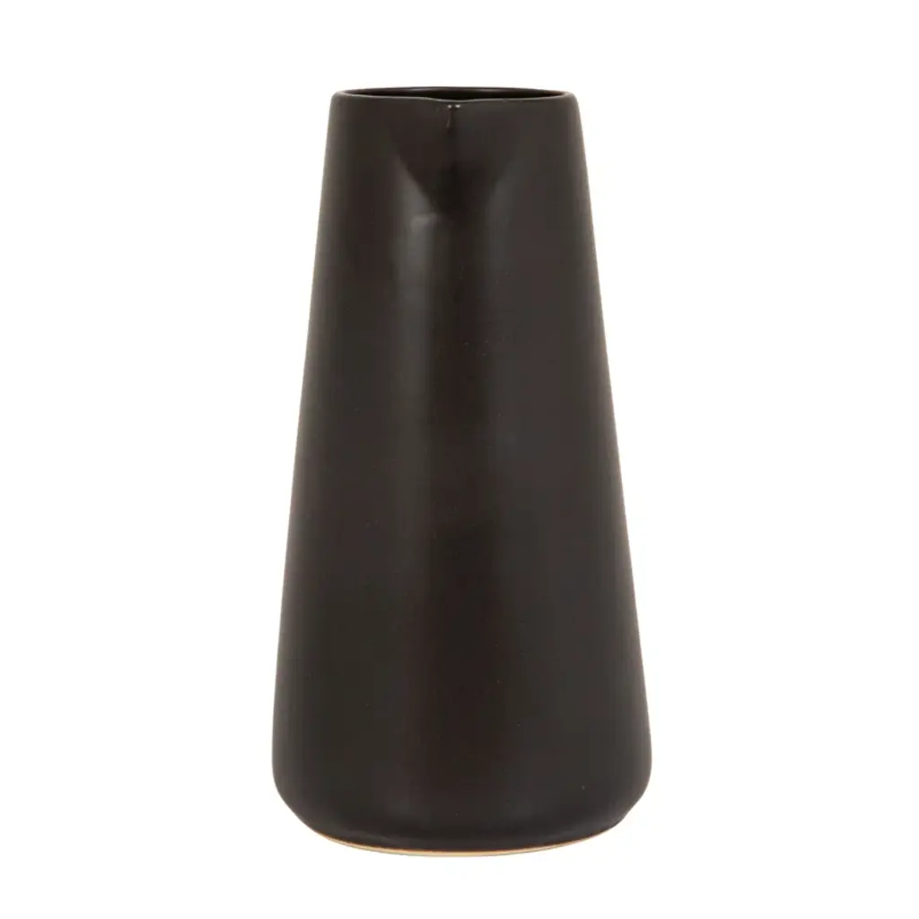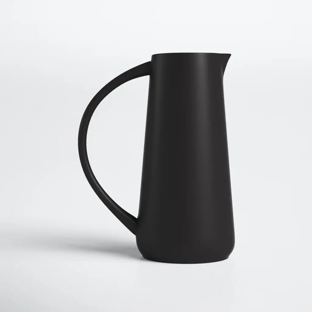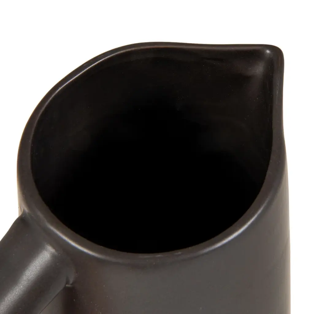 Whether you're showing off for your guests or just seeking to elevate everyday dining, this pitcher lets you refill drinks in sleek, streamlined style. It's made from stoneware in a versatile black finish that easily complements monochromatic table settings or pops against vibrant arrangements. This 48oz pitcher has the capacity to serve 5-6 standard 8oz glasses. The best part? It's microwave and dishwasher safe, so it's versatile enough for all sorts of beverages and very easy to clean.