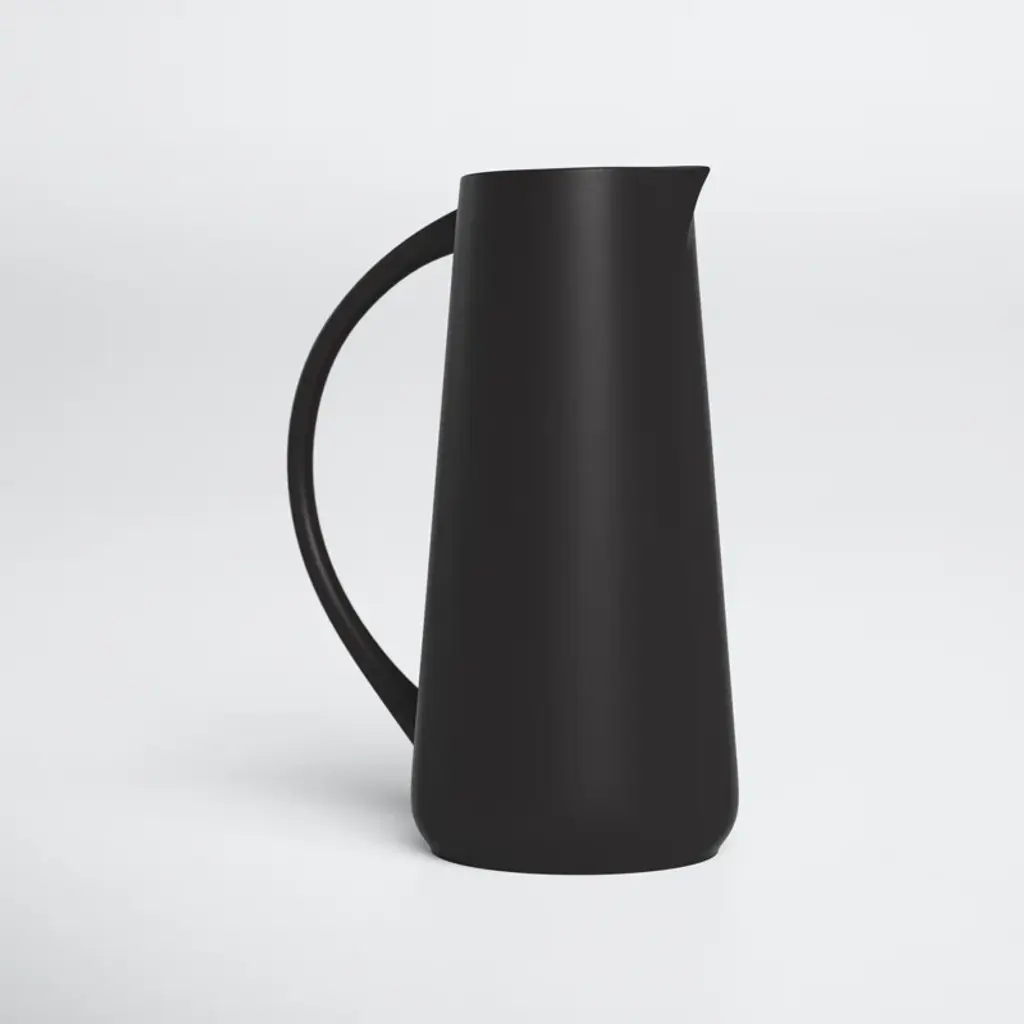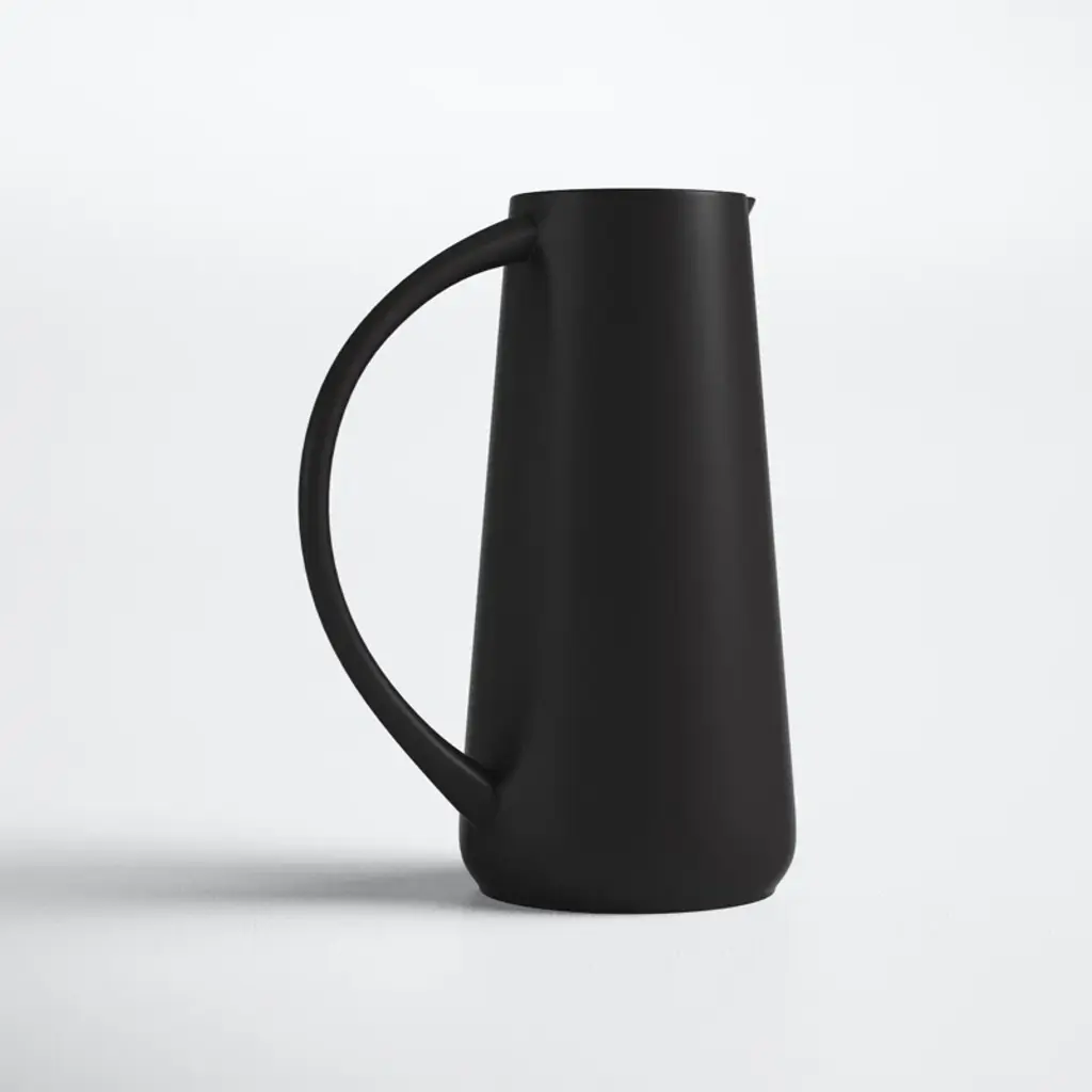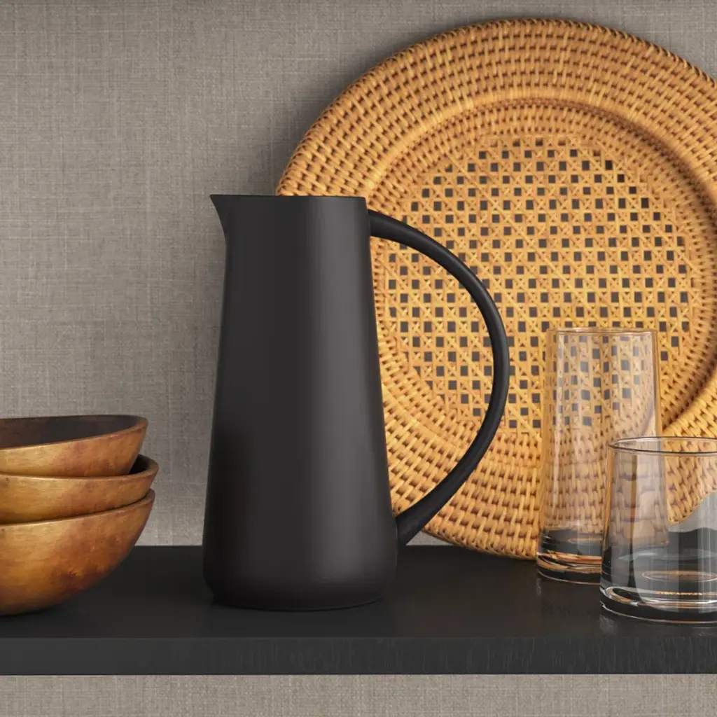 Whether you're showing off for your guests or just seeking to elevate everyday dining, this pitcher lets you refill drinks in sleek, streamlined style. It's made from stoneware in a versatile black finish that easily complements monochromatic table settings or pops against vibrant arrangements. This 48oz pitcher has the capacity to serve 5-6 standard 8oz glasses. The best part? It's microwave and dishwasher safe, so it's versatile enough for all sorts of beverages and very easy to clean.
