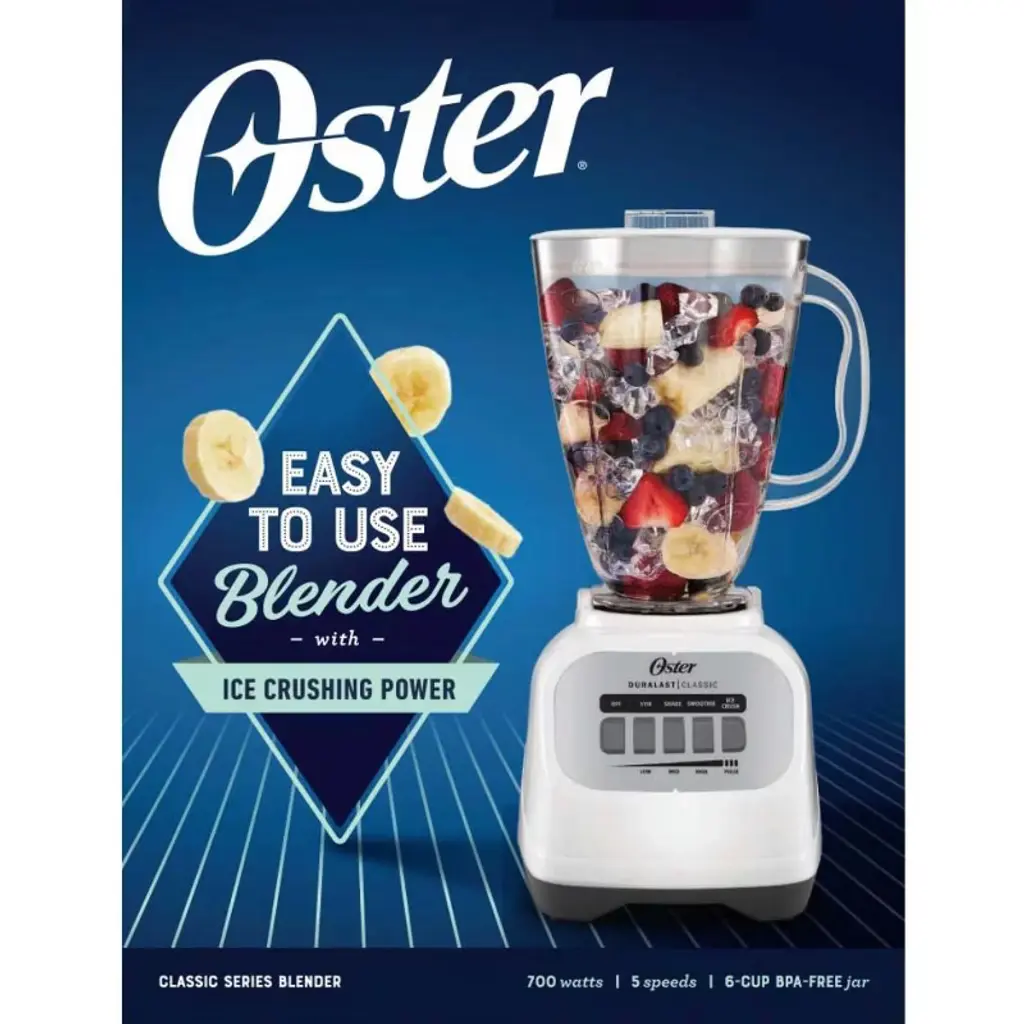 Oster Classic Series 5-speed Blender With Plastic Jar - White, 6 Cup