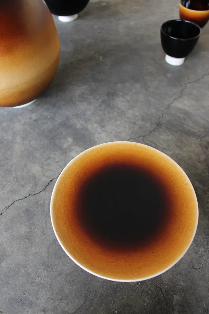 Ott another paradigmatic handmade ceramic cup by Studio Yoon Seok-hyeonDimensions: W 10 x H 9 cmMaterials: Ott(Natural resin from Ott tree), porcelain250gIt is available to customize various colors in Ott's natural color range(Brownish, yellowish to Black)and to proceed with commissioned works, please contact us.Glazed ceramic pieces are not recyclable for their re-production and they mostly end up in a landfill.In this process, various ground pollutions are caused by chemical and toxic particles resulting fromsome glazings. “It’s a shame that clay, one of the most natural materials, is treated in this way”. saysSeok-hyeon Yoon. Technically, the clay itself is reusable as chamotte, powder of baked clay. Glassyingredients of glazing complicate ceramic recycling. Because when they are baked as one, they fusetogether. Then the earth is not pure anymore.He thought if he can get pure earth again from recycling systems such as those of glass and plastic,the earth might be reused through re-production. So, he searched for alternative glazings and foundout “Ott” known as Korean traditional lacquering Material. It’s a natural resin from the Ott tree and waswidely used as glazing for woodenware in the past.To glaze Ott on the ceramic surface, it doesn’t need to be baked as it just drys out. And he discoveredan interesting fact that it evaporates when it’s heated with the high temperature in kilns.It means that we can get clean earth again and reutilize it.This project aims for actualizing ceramic recycling for its re-production through introducing potentials of alternative glazing, Ott, by applying it on domestic ceramic objects to experiment with its practicalities and aesthetics.This handmade product’s Ott lacquer is a natural resin derived from trees. Therefore, it can beirregular in shape, colour, and finishing.Natural Ott is waterproof, stain-free, and antiseptic.Ott does not absorb residues so that it is sanitary.To avoid discolouration, remove moisture thoroughly after dishwashing.This product used natural Ott as an alternative glazing.It does not have a negative impact on environments when decomposed. And Ott helps the raw ceramic materials to be recycled as chamotte.This product is consumable, and Ott is not 100% scratch-proof. So, frequent frictions may shortenits service life. Please do not cut food on this product. Also, avoid fire or boiling.Seok-hyeon YoonI enjoy revaluing materials and objects which are always around us.Surroundings of everyday life often become a starting point for my design projects. I observeand analyze them and then try to link them to design, environment, society, and industry.My interest in projects is the materiality and socio-cultural value of design objects. With thisinterest, each of my projects reflects undiscovered stories of human life. As a designer, I interpret them with my own perspective and create objects to support andenhance our everyday life.My design process follows concept arrangement based on exploring a subject, in-depth researchfor materiality and contexts, hands-on practice such as drawing and model making and production.