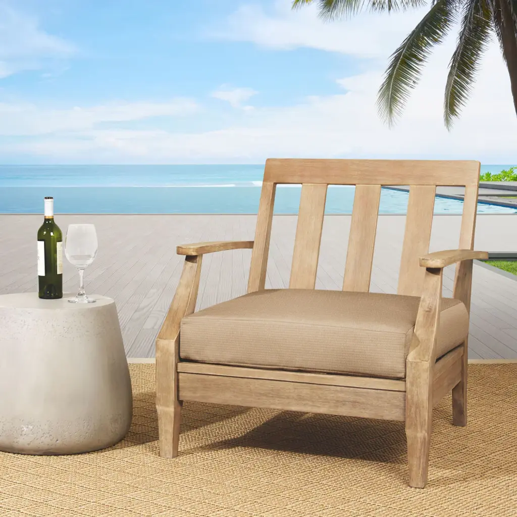 Step out on your porch or patio and start brightening it up with this beautiful new chair cushion! Featuring a stunning solid textured fabric in a rich, tan hue, this cushion will instantly enhance your space and help you comfortably enjoy the outdoors! Crafted out of a performance material right here in North America, this chair cushion is made to withstand the sun, rain and even stains so that all you have to do is sit back and relax! Outdura is the trusted brand for performance upholstery fabric for outdoor and indoor use.-Outdura fabrics are made from 100% solution-dyed acrylic with color pigments infused to the core of fibers, ensuring colorfastness, UV resistance, and durability.- • Ideal for casual indoor and outdoor use• Includes one (1) cushion• Cushion cover can be removed for easy cleaning• Available in a variety of sizes and colors to ensure that you find the perfect match for your furniture• Cushion only. Furniture not included.• • Made in North America•
