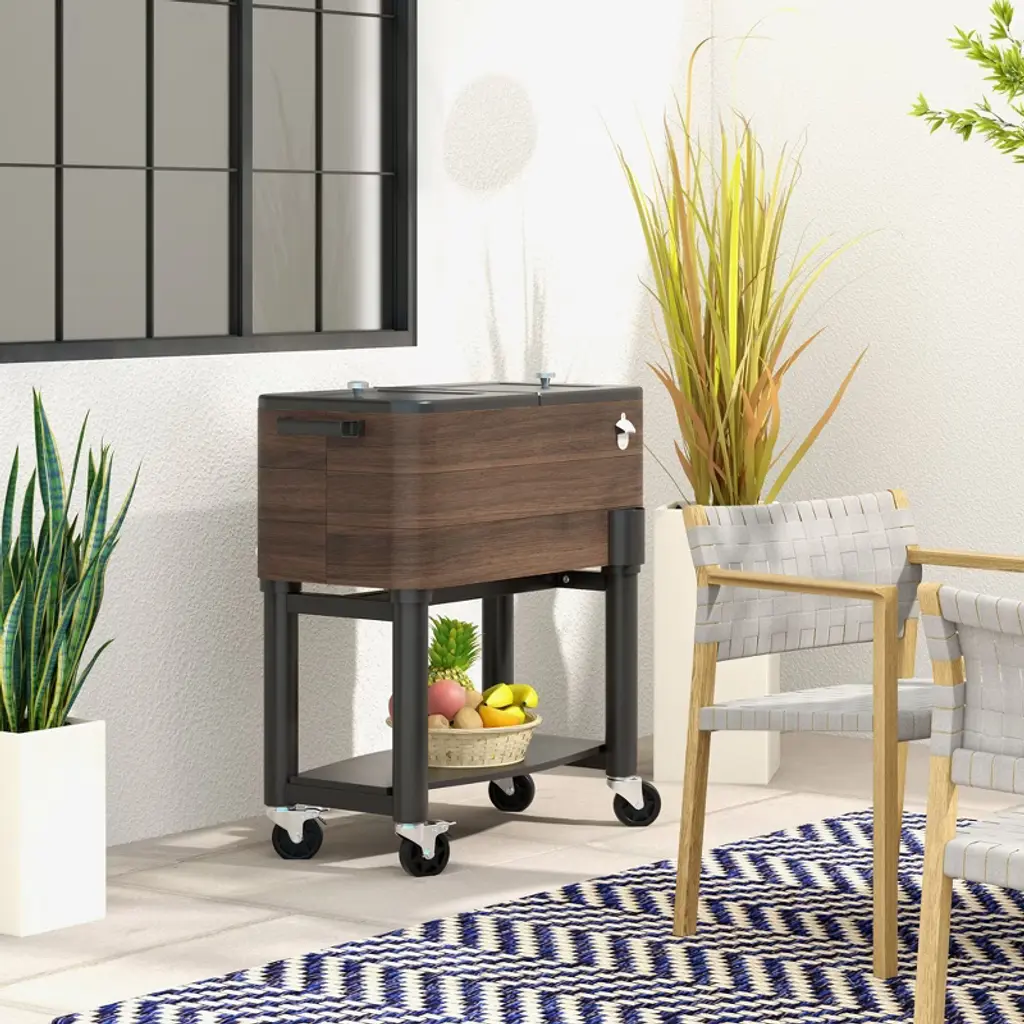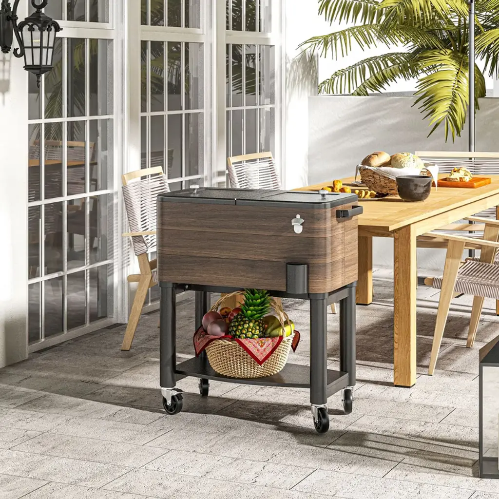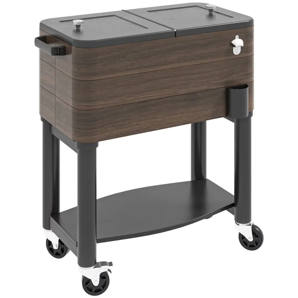 Chill out and keep the party rolling with an Outsunny Outdoor Cooler. This portable oasis keeps up to 60 beverages frosty with an insulated basin. This is an ice chest with wheels, meaning your drinks follow wherever the fun goes. When it's time to select a drink, the bottle opener on the side ensures you won't spend time asking around. When it's time to tear down, our rolling cooler drains via spout, letting gravity do the work, and separates to pack compact. Get out, get comfy, get Outsunny.