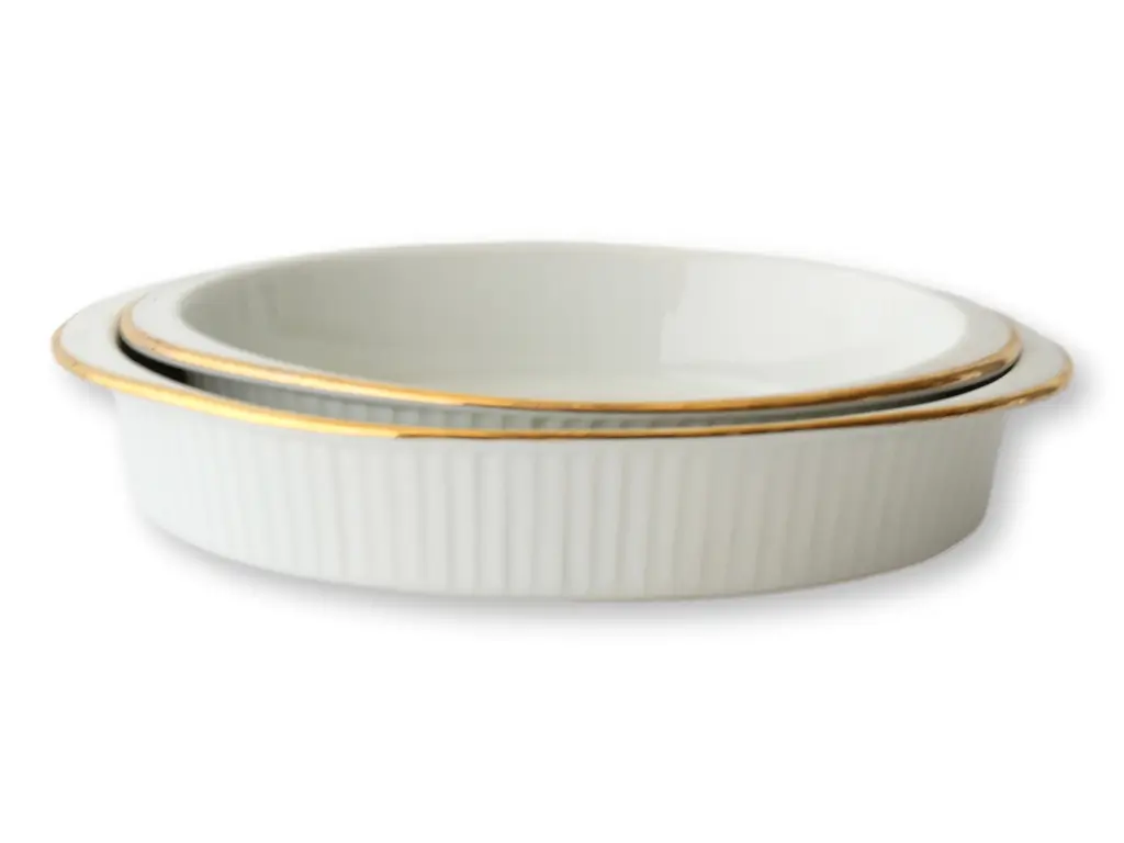 Oval Baking Dish With Two-Handle Golden Holder