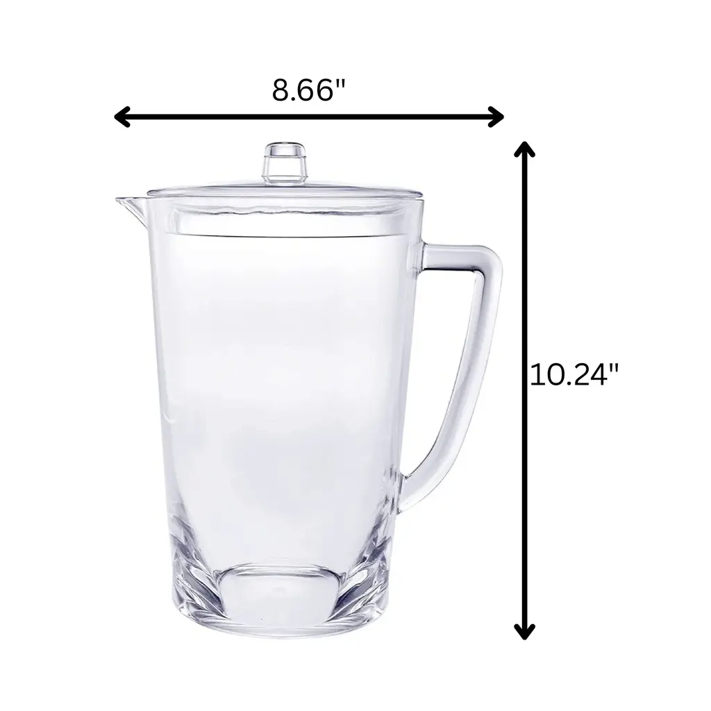 Tired of constantly improvising when it comes to serving your delicious homemade lemonade or margarita or do you want to impress your guests with a refreshing beverage? If so, then this drink pitcher is the perfect choice for you!. This water pitcher with lid is break resistant, meaning you don't have to worry about messy accidents or replacing a broken pitcher. Impress your guests and elevate your entertaining game to the next level with our unbreakable diamond-cut plastic pitcher with lid.. This stylish and crystal-clear juice pitcher with spout is made from high-quality, BPA-free durable material that is built to last. It features a unique diamond-cut design that is sure to catch the eye of your guests and add a touch of elegance to any occasion.. This drink pitcher has a generous capacity of 2.75 Quarts, so you'll have plenty of room to mix up your favorite drinks. And with its convenient handle and spout, it's easy to pour and serve your beverages with ease.. Whether you're hosting a backyard barbecue, a pool party, or just enjoying a warm summer evening on the patio, this drink pitcher is sure to become your go-to choice for serving up delicious and refreshing beverages. So, get this drink pitcher today and elevate your entertaining game to the next level!. Inside and Outside Friendly. Crystal Clear looks similar to glass