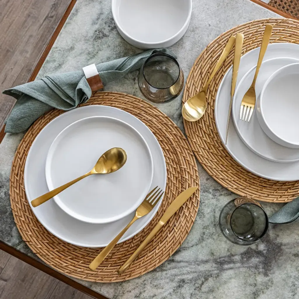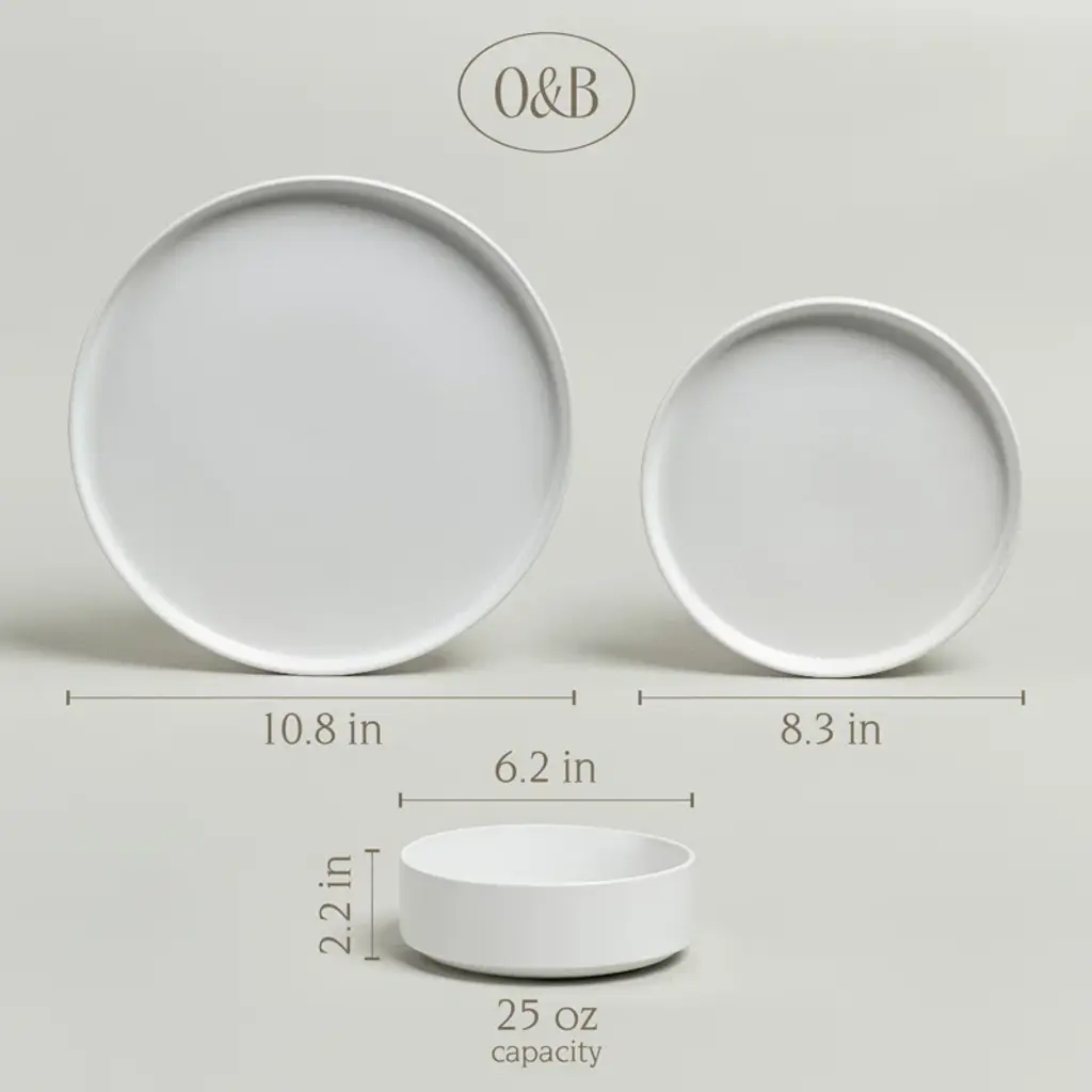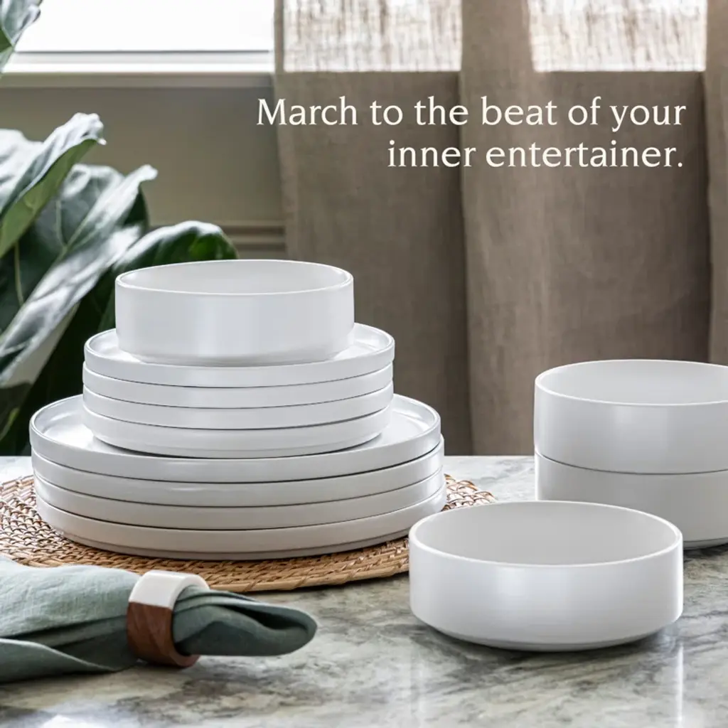 Over&back Stackable 12-Piece Semi Hand-Finished Stoneware Dinnerware Set (Set Of 4)