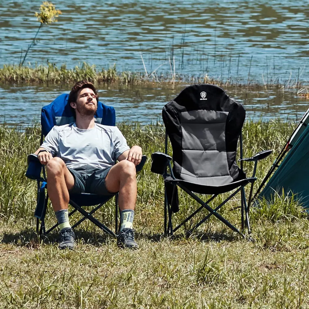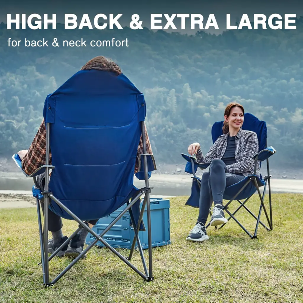 Oversize Camping Chairs For Adults, Folding Lawn Chair Supports 350 Lbs With High Back And Cup Holder, Blue