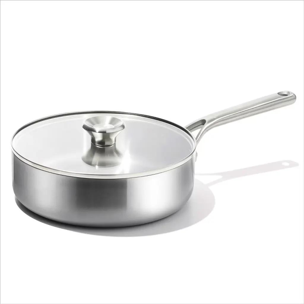 Oxo Mira 3.57qt Tri-ply Stainless Steel Multi Clad Chef's Pan With Lid: Ceramic Nonstick, Dishwasher-safe, Induction Compatible