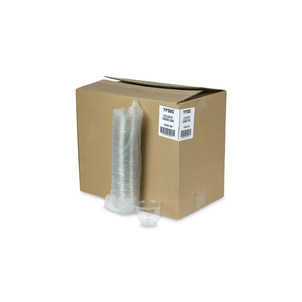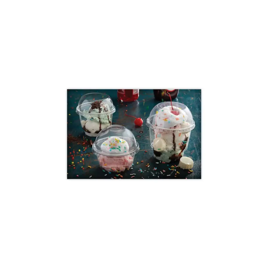 Let these sturdy, economical Pactiv Evergreen EarthChoice Recycled Clear Plastic Sundae Dish with 8 oz. capacity star at your next social gathering. Clear design provides an unobstructed view of the dessert. Precision-rolled rims provide a smooth, "no drip" experience. Dishes are suitable for a room temperature display as well as safe for use in a blast freezer.