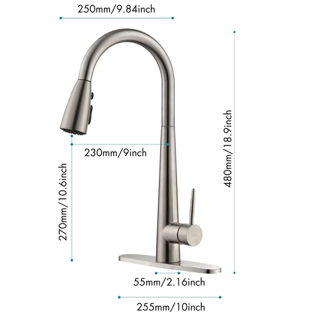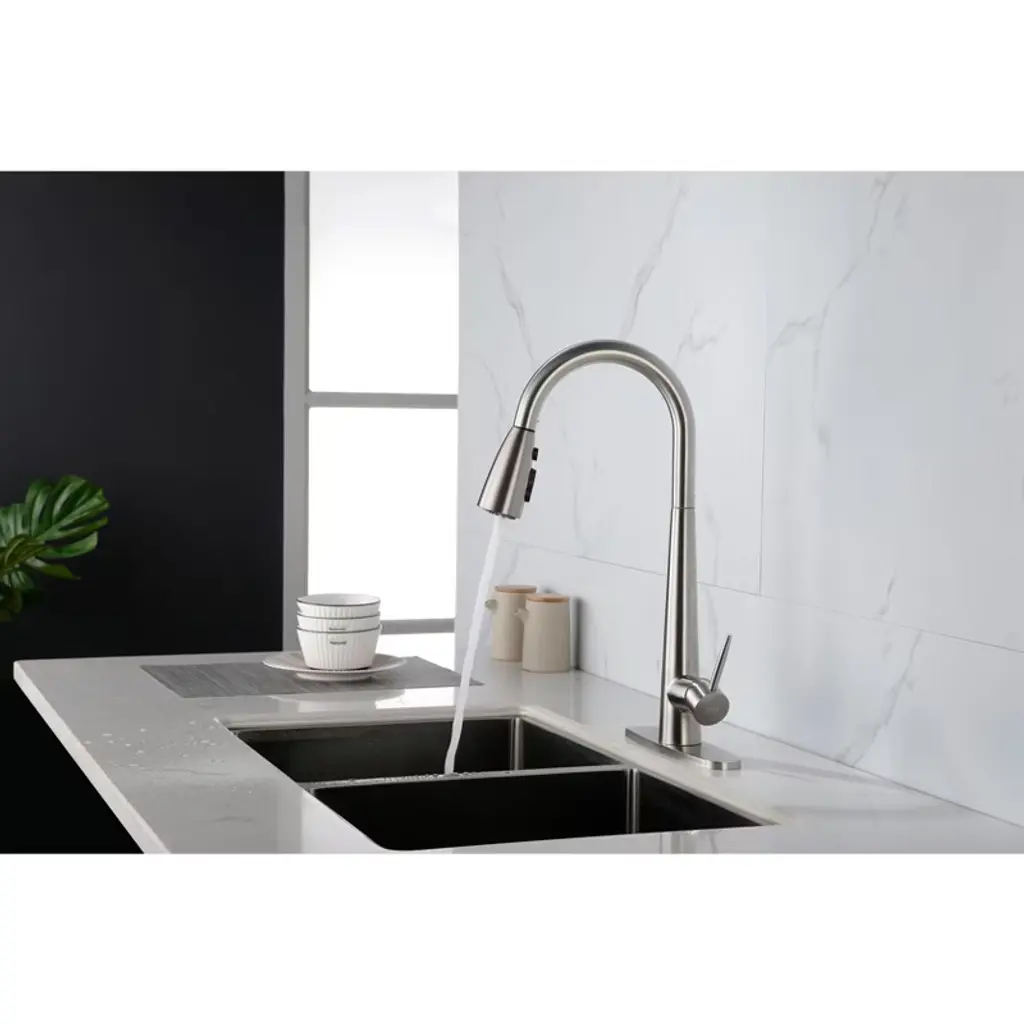 Paged Bathroom Sink Faucet, High Arc Single Handle Bathroom Faucets With Deck Plate, Kitchen Faucet With Pull Down Sprayer, Brushed Nickel