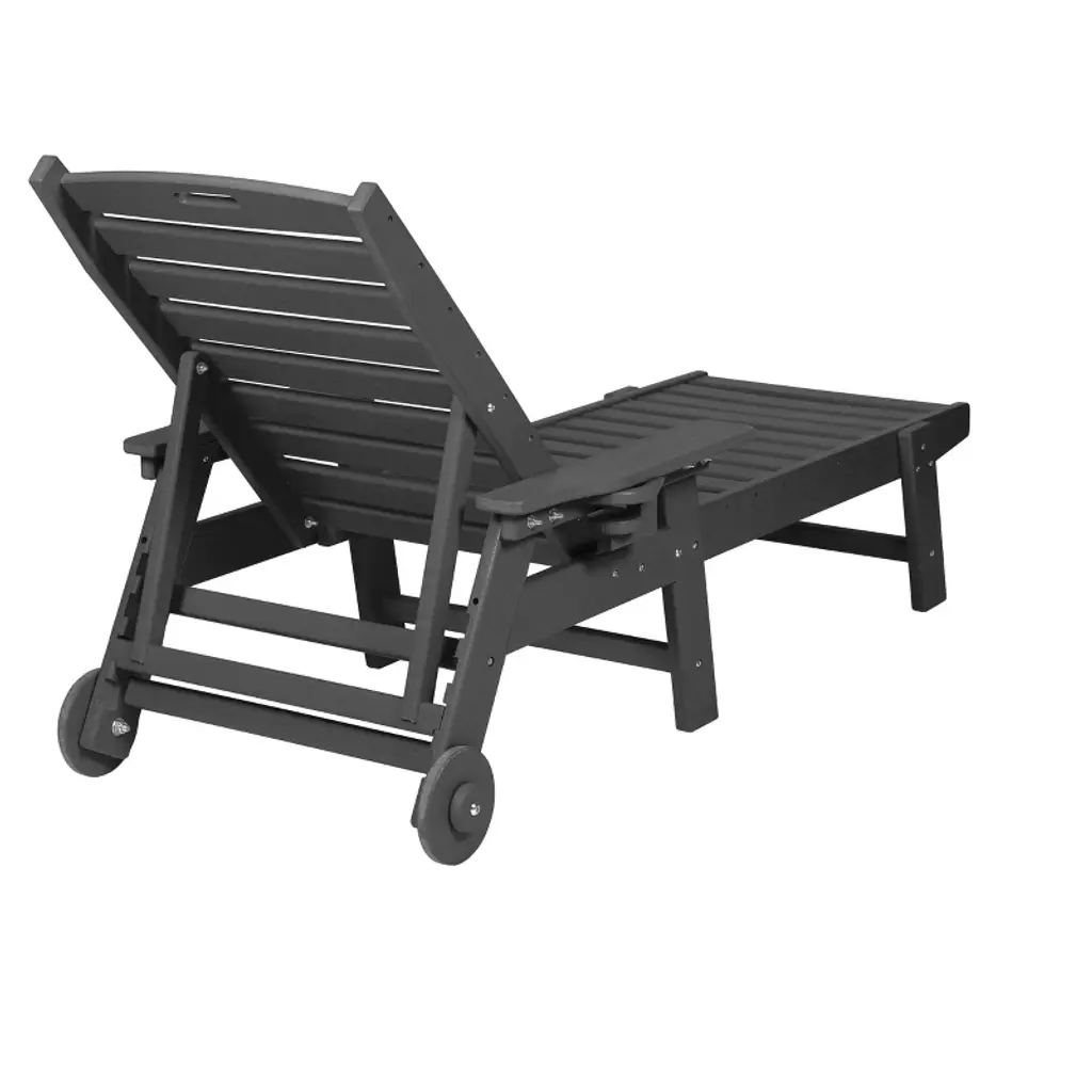 Paged Patio Chaise Lounge Chair With Wood Texture And 5 Positions, Hdpe, Patio Lounge Chair With Wheels And Cup Holder For Pool, Poolside, Grey
