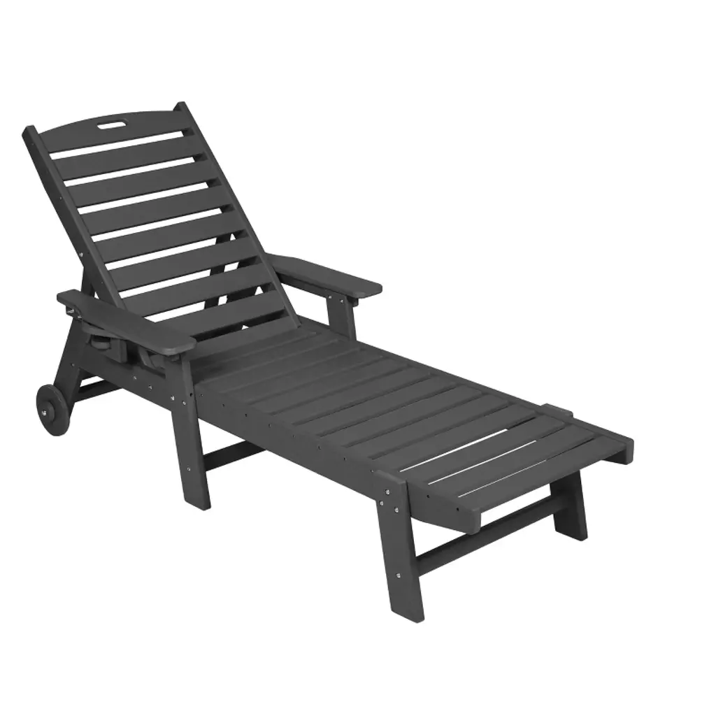Paged Patio Chaise Lounge With Wheels And Cup Holder,outdoor Lounge Chairs With Wood Texture And 5 Positions,modern Beach Chair For Pool,deck,black