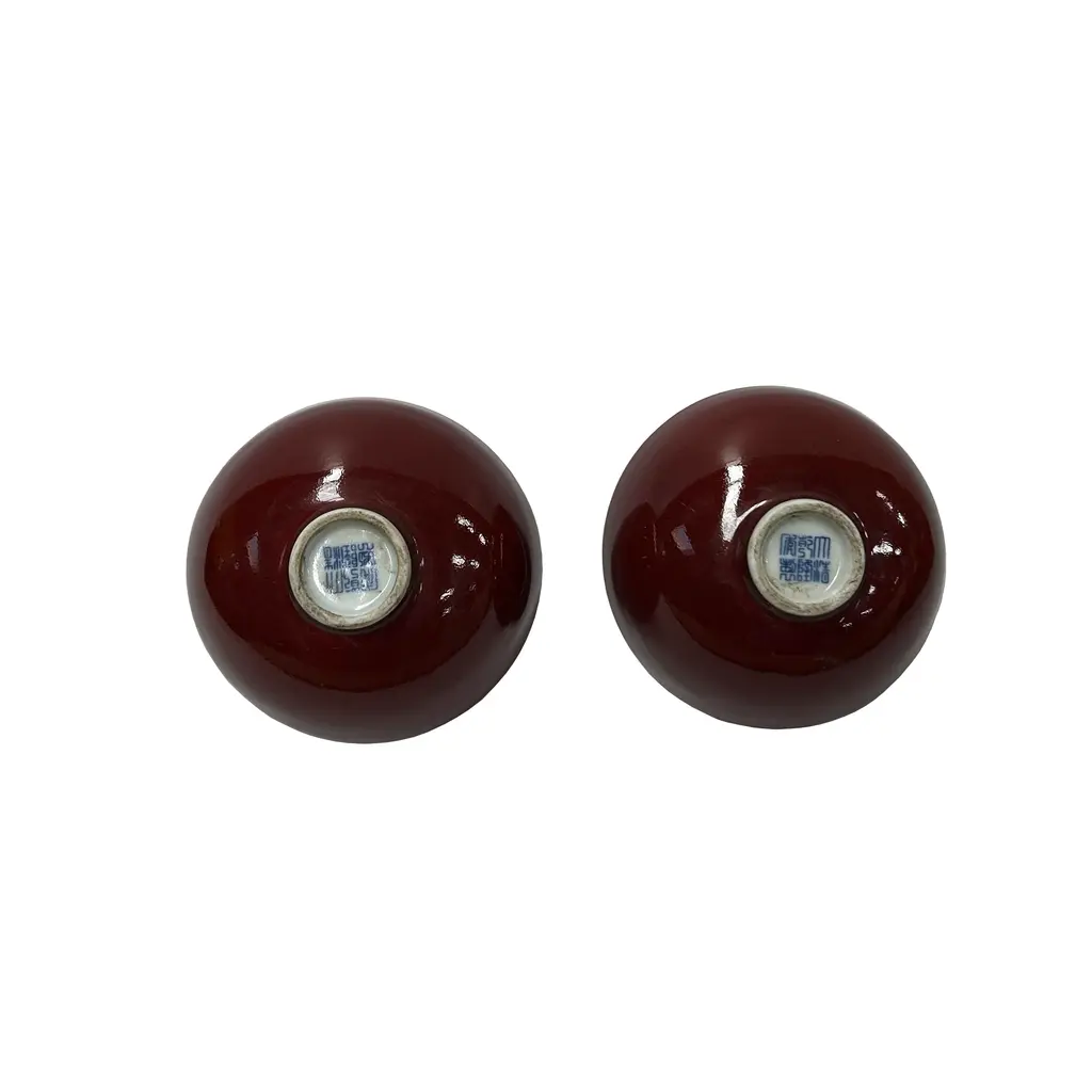 Pair Chinese Porcelain Oxblood Red Glaze Cup Display Art
