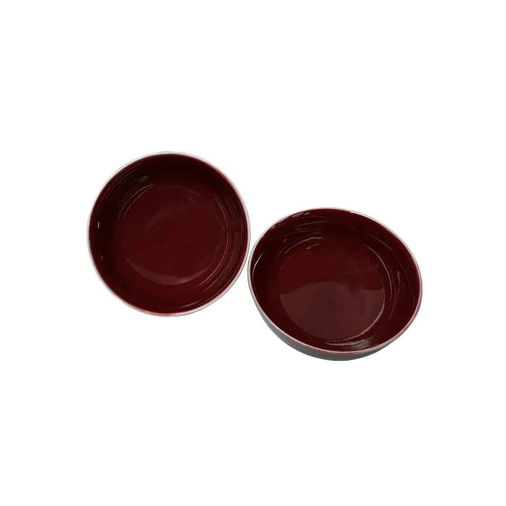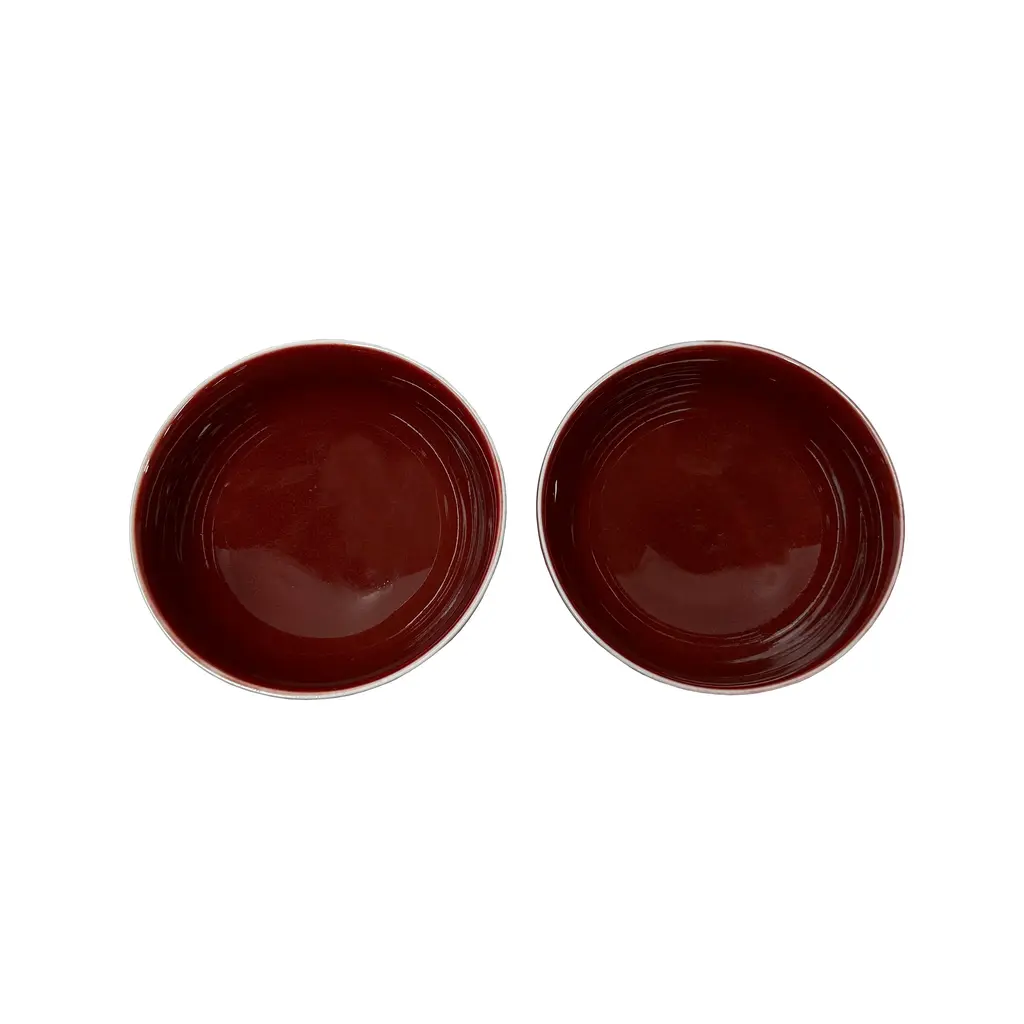 Discover the alluring charm of these collectible Oriental oxblood red porcelain cups, a stunning pair that effortlessly blends traditional artistry with modern appeal. The intense, deep red glaze, a hallmark of master pottery, shimmers with an almost liquid quality, capturing and reflecting light beautifully. While undeniably a magnificent display art, these versatile pieces can also serve as elegant accents, whether gracing a bookshelf, adorning a tabletop, or even holding small treasures. Immerse yourself in the rich cultural heritage and artistic excellence embodied in every curve of these magnificent porcelain creations. Not for serving. It is good as a collectible too. Dimensions: Dia 4.25" x h2" Origin: China Material: Porcelain Condition: Quality handmade, a variation on details, good condition USA domestic continental buyers of 48 states pay $20 shipping (buyers of Hawaii, Alaska, US Islands, Florida Keywest, and Canada pays the extra shipping cost). Insurance and handling charges are already included in the shipping cost.