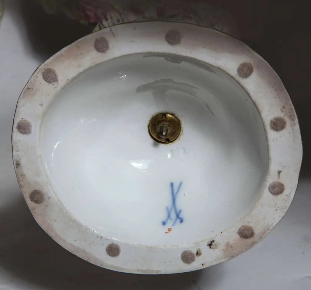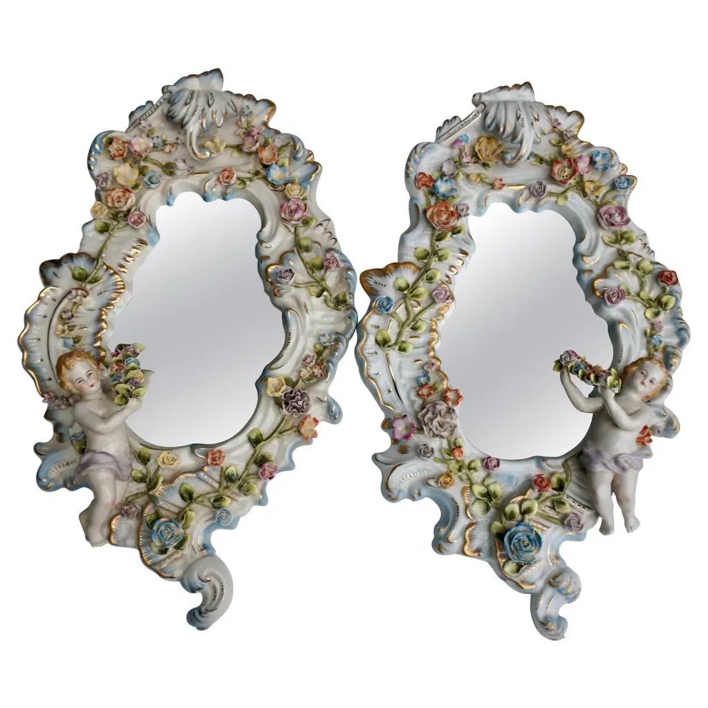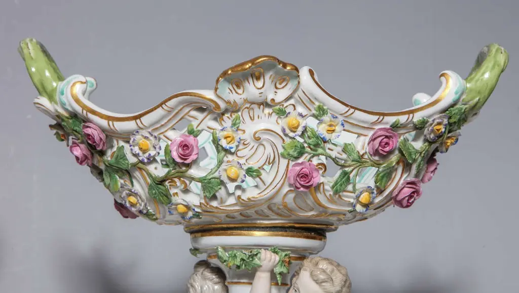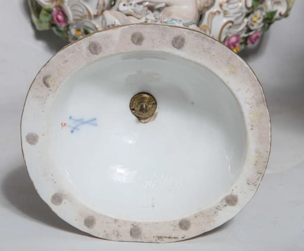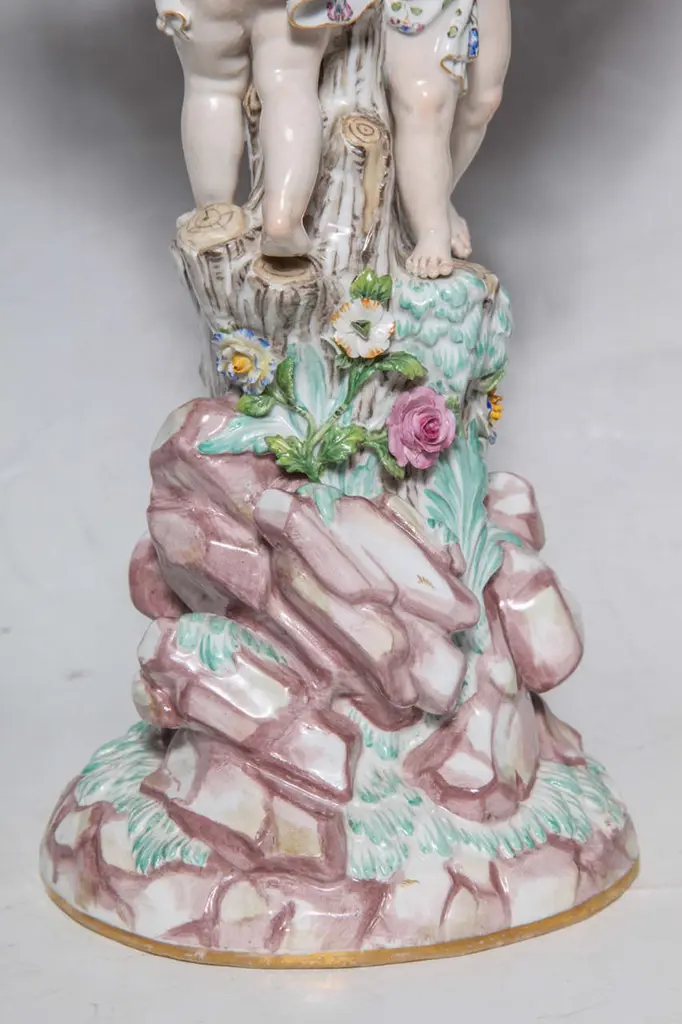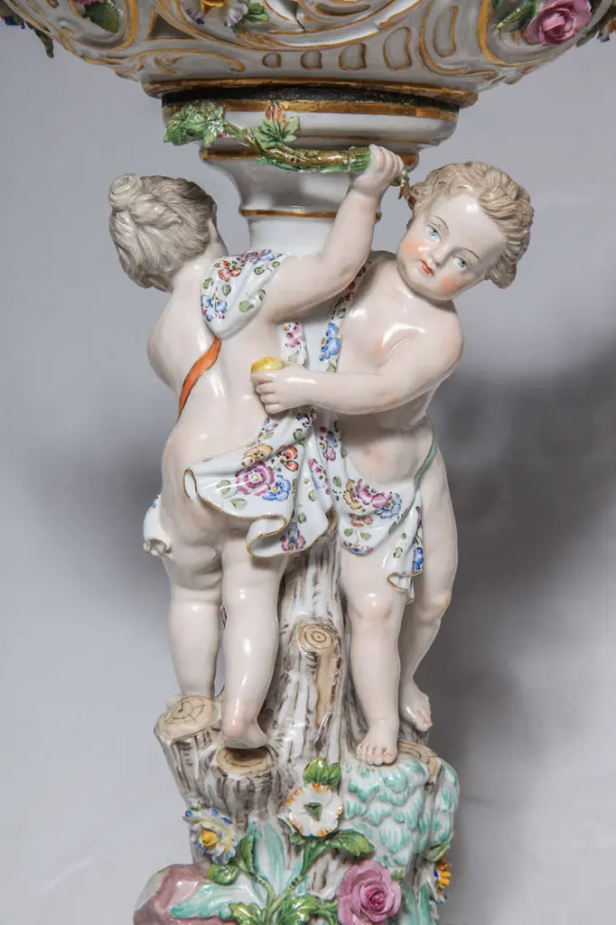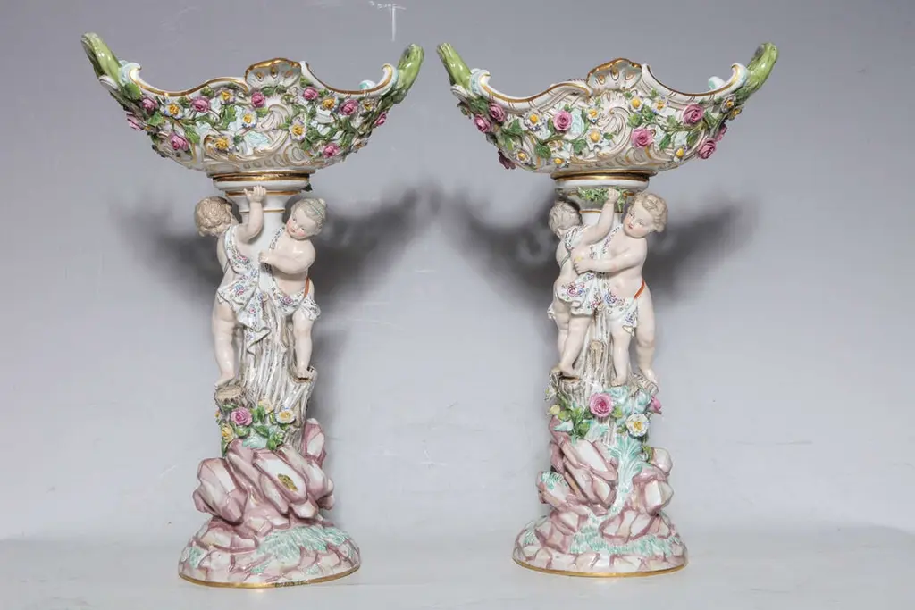 Pair Of 19th Century Meissen Porcelain Cupid Centerpieces With Baskets