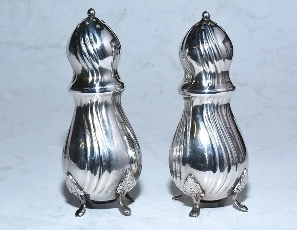 Pair Of 20th Century Footed Danish Silver Plate Caster, 3 Pairs Available