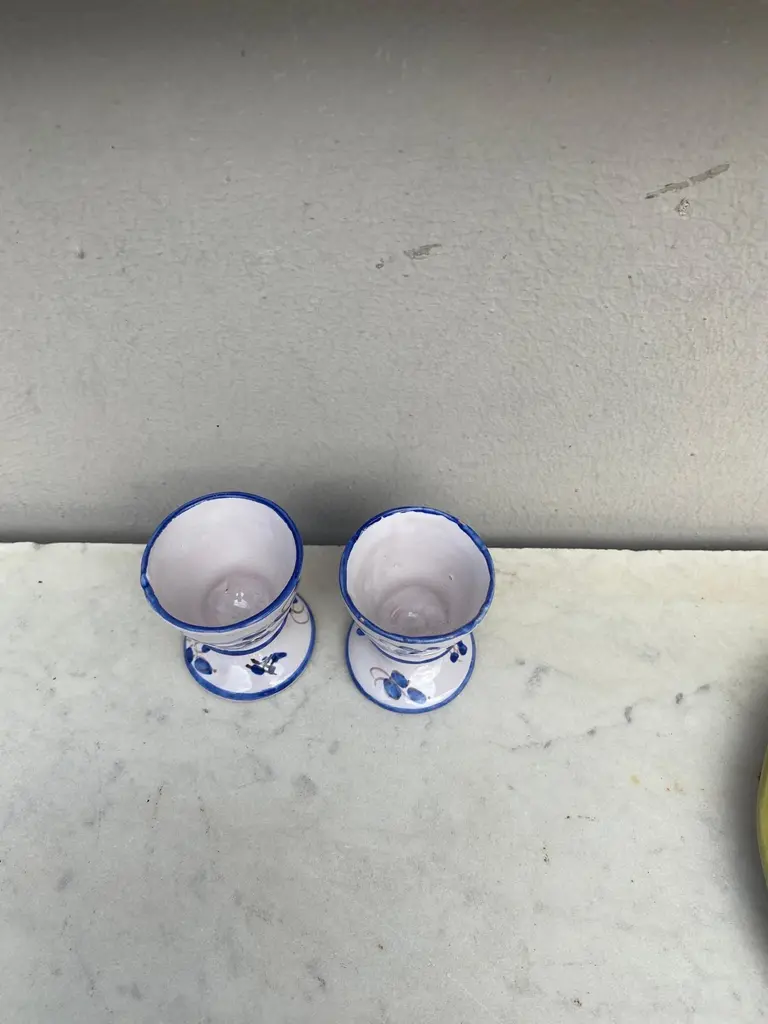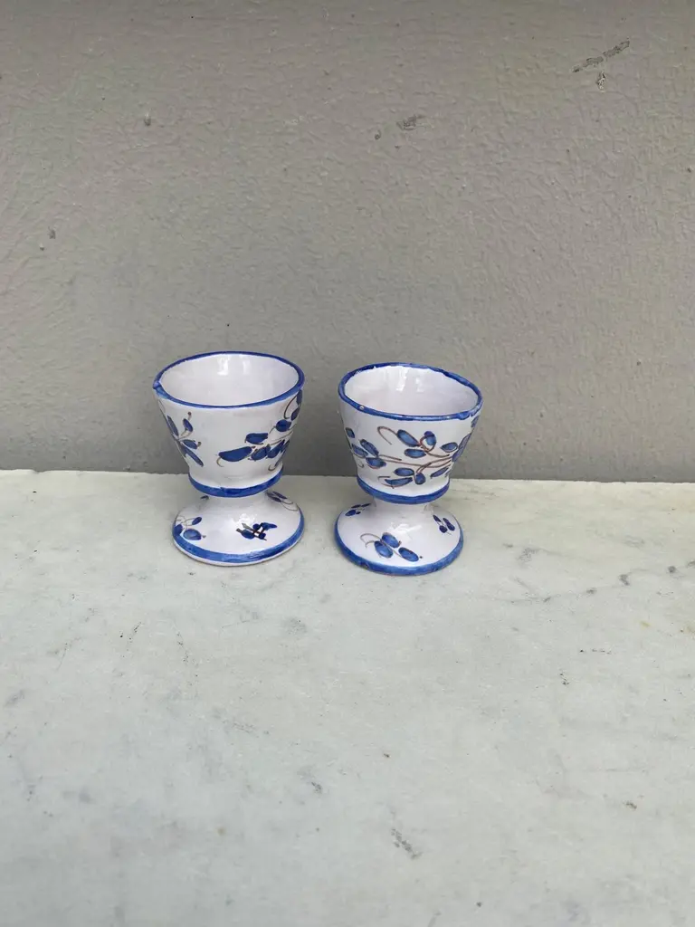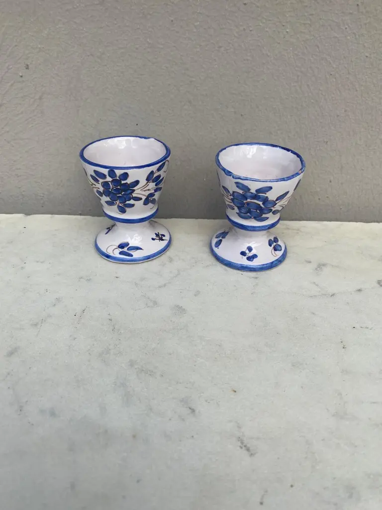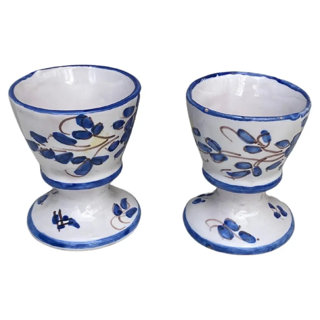 Pair Of Blue & White Faience Egg Cups Martres Tolosane