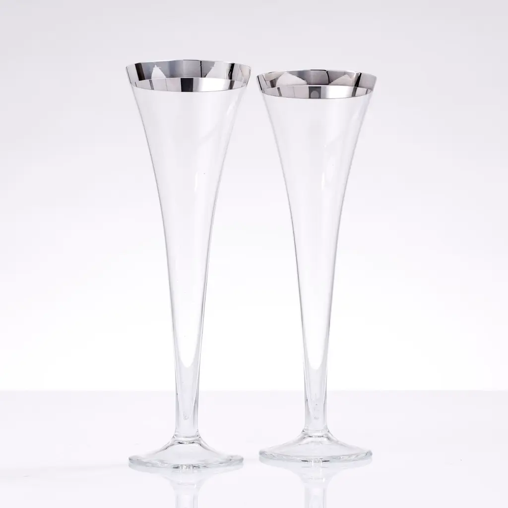 This champagne flute with fine silver decoration is hand-painted with liquid silver. The silver mixture are applied with a brush by experienced painters, fired at high temperatures, the silver layer is then created in a galvanic process.