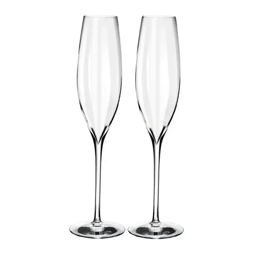 These flutes are perfect for enjoying a glass of Champagne to celebrate those special moments. Art Deco-inspired Crystal Champagne Flutes, featuring vertical cut lines for a sparkling finish. These crystal glasses are hand cut and polished by expert craftspeople. The classic design makes for a sophisticated addition to any tablescape.Made from Lead-Free Crystalline Crystal.